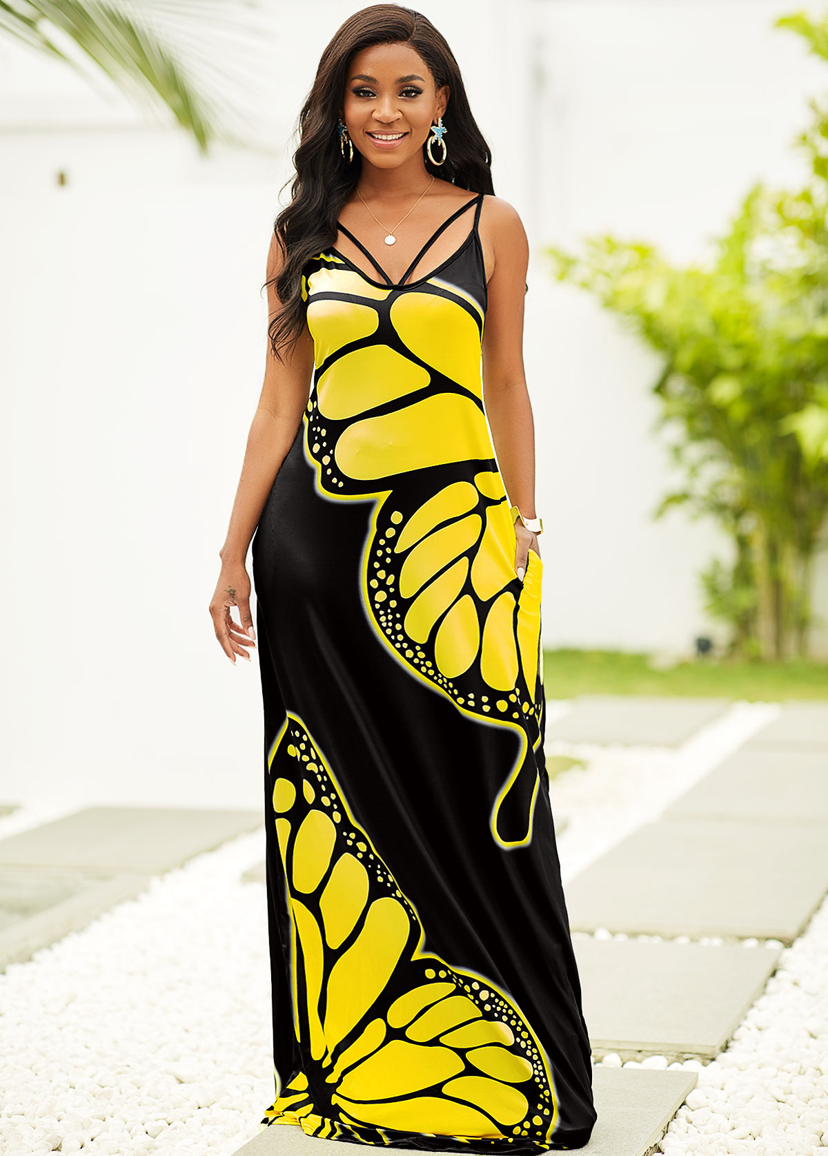 • Butterfly Print Spaghetti Strap Maxi Dress