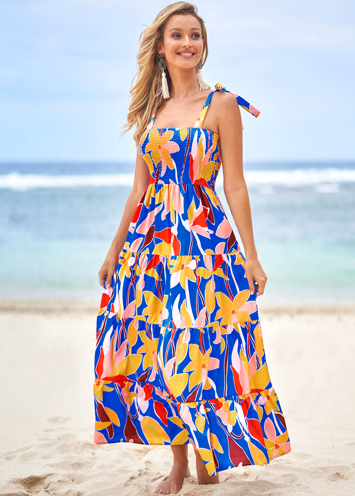 • Floral Print Multi Color Tie Shoulder Dress