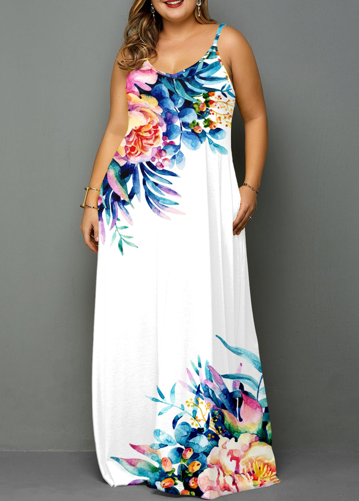 • Floral Print Spaghetti Strap Dress