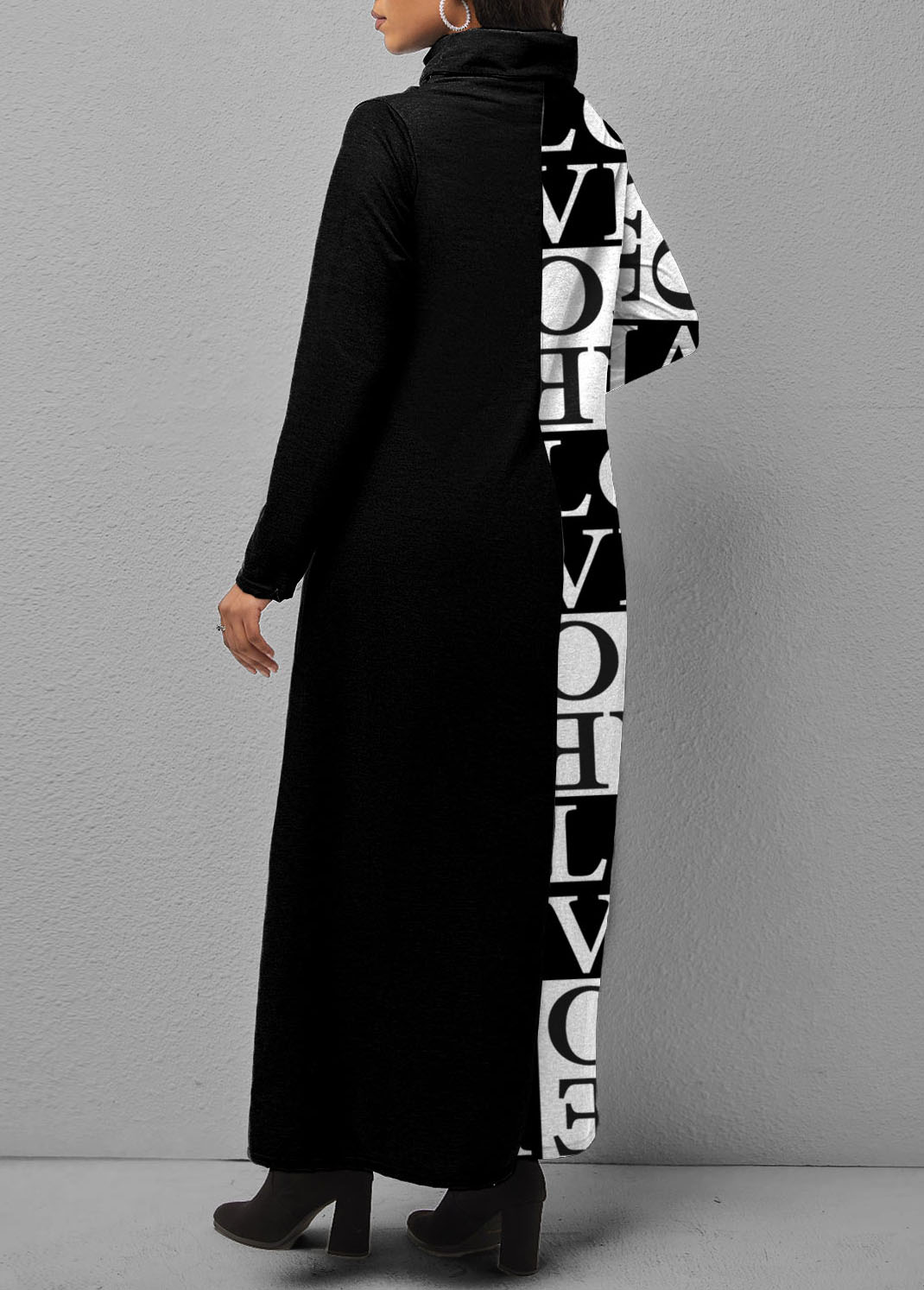 Letter Print Turtleneck Dip Hem Dress