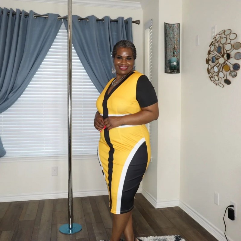 Short Sleeve Ginger Contrast V Neck Dress