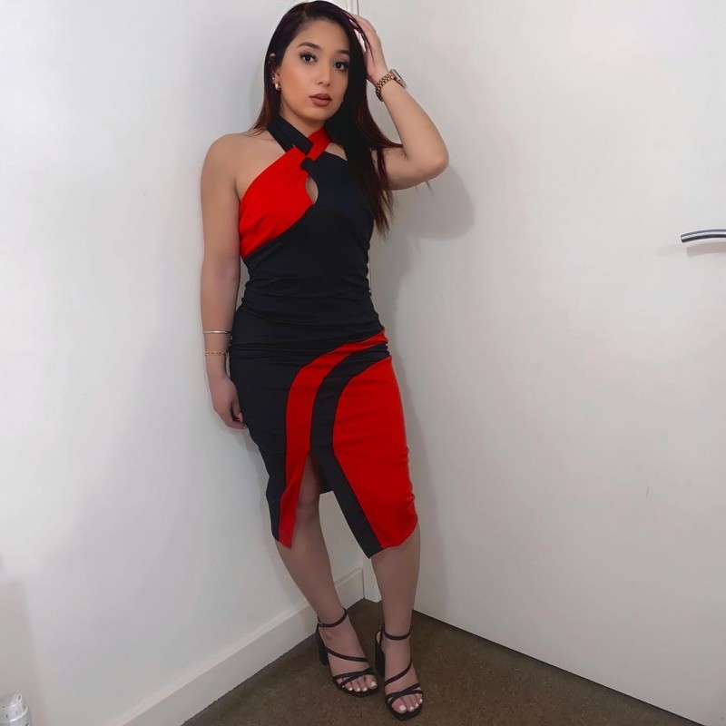 Side Slit Contrast Sleeveless Bodycon Dress