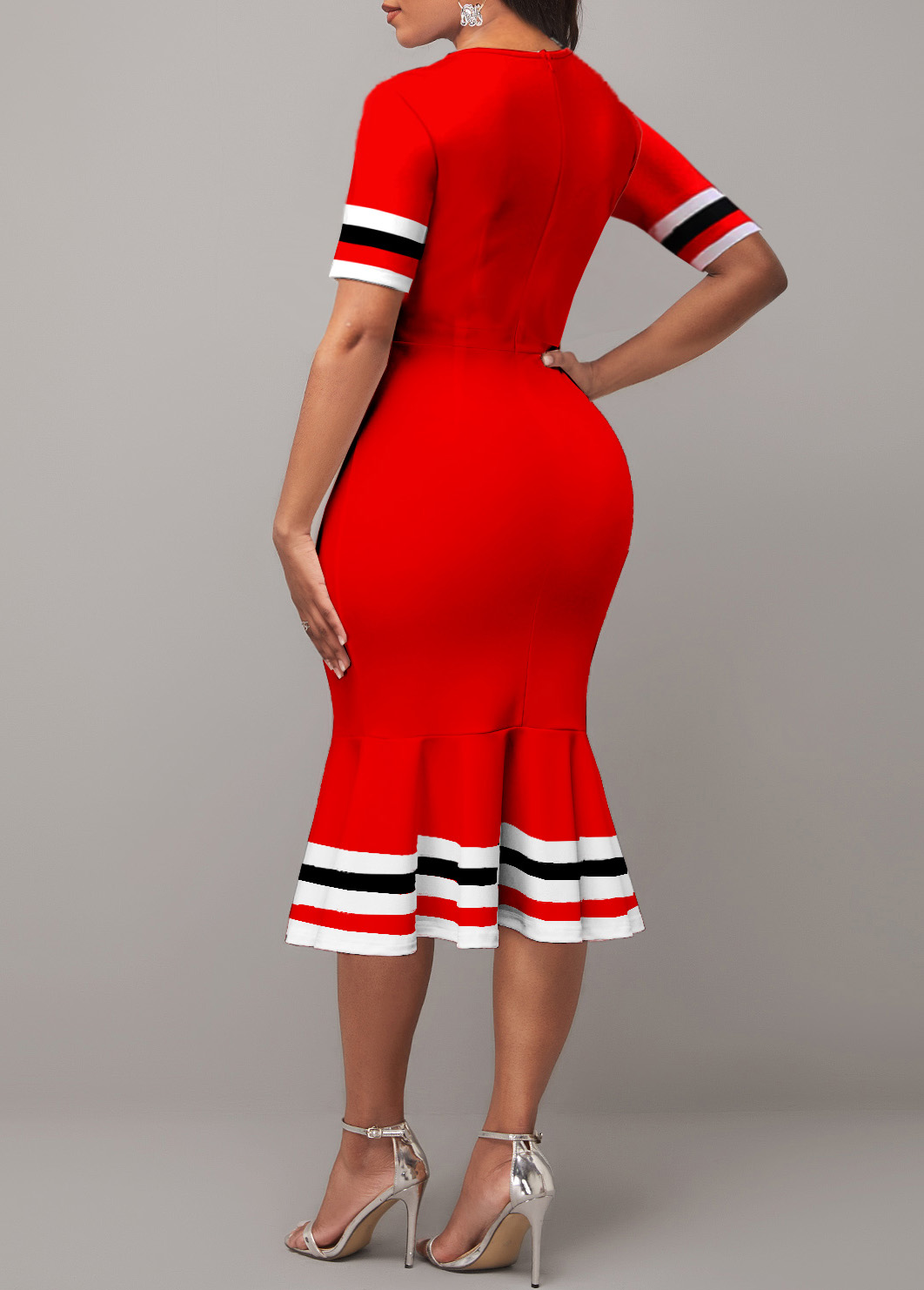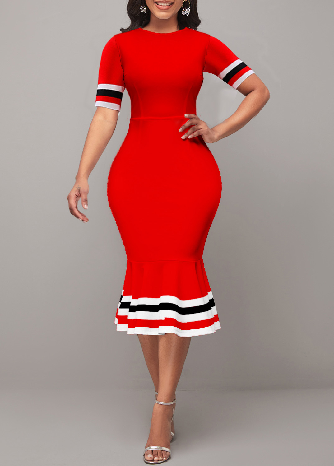 Red Stripe Print Short Sleeve Dress
