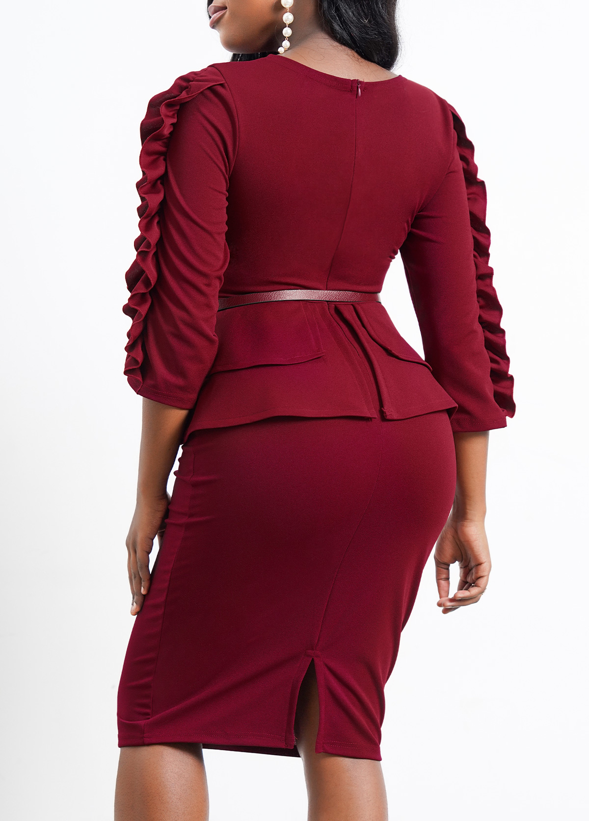 Red Leopard Hollow Out Belted Bodycon Dress