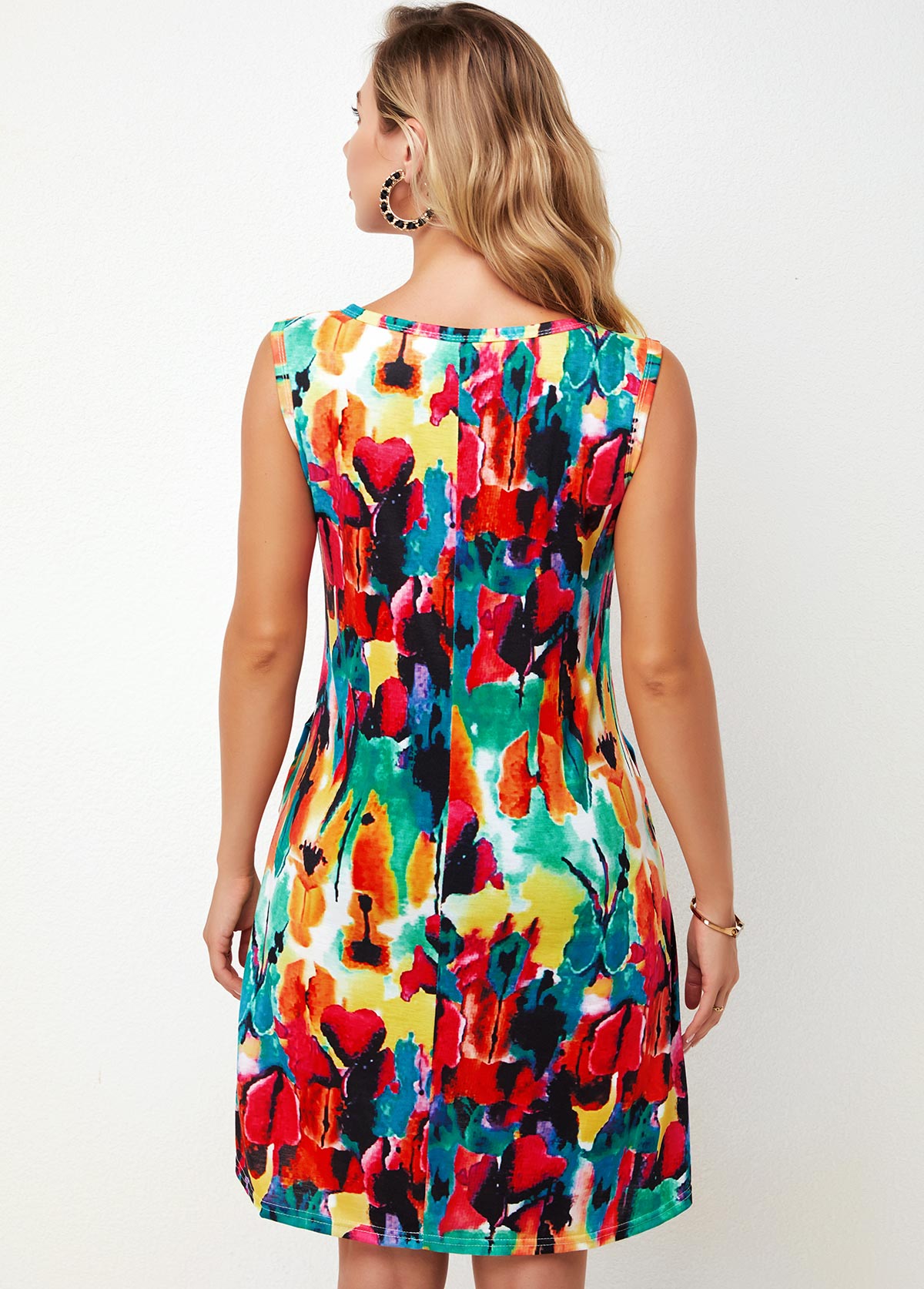 Printed Sleeveless V Neck Dress
