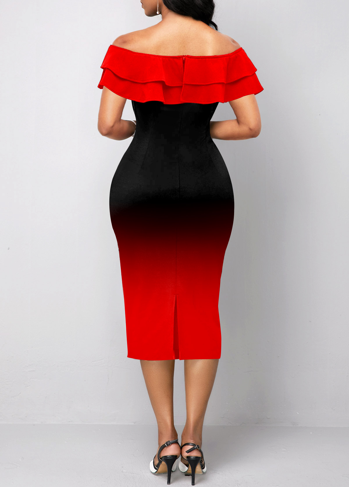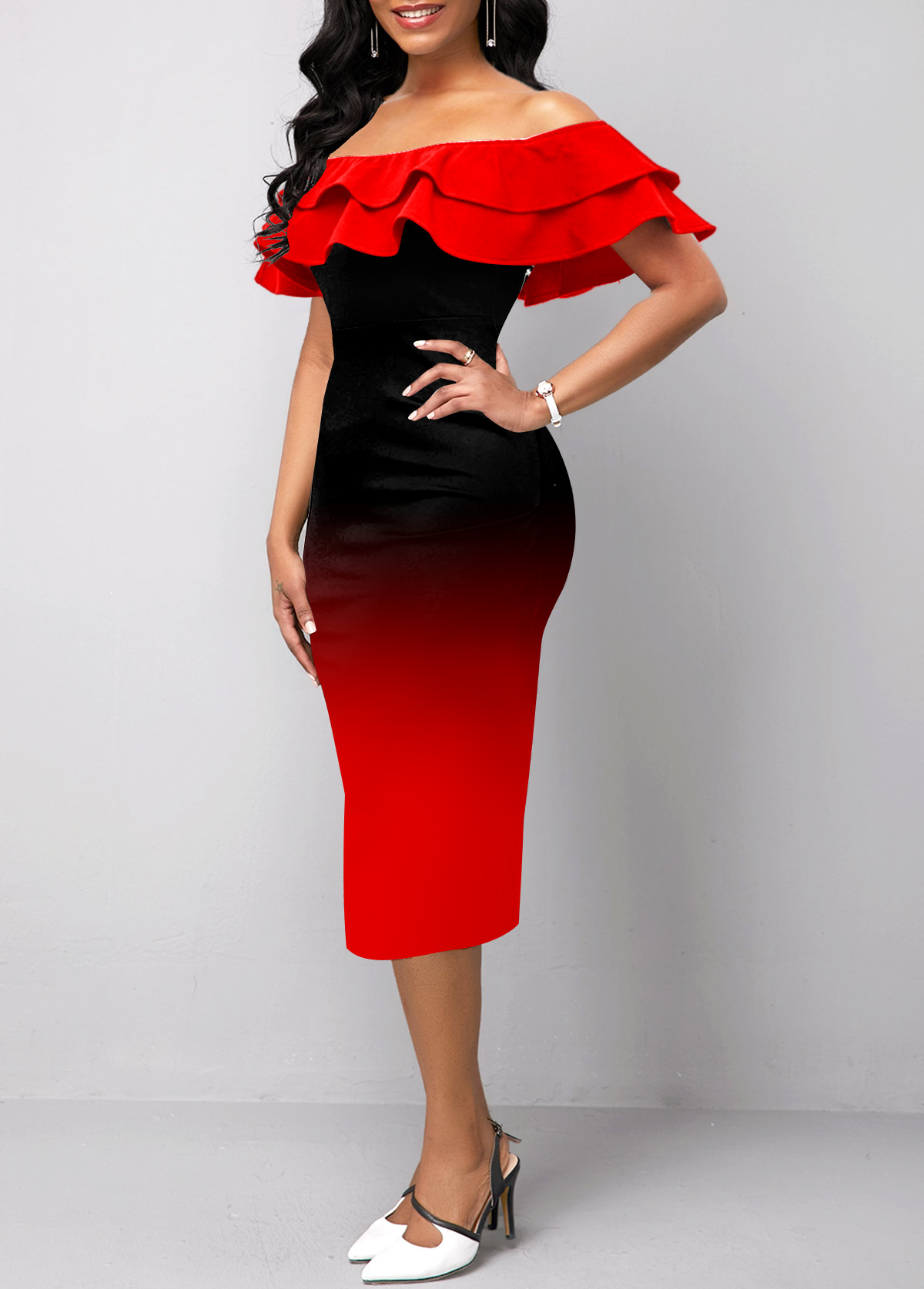 Ombre Red Off Shoulder Sheath Dress