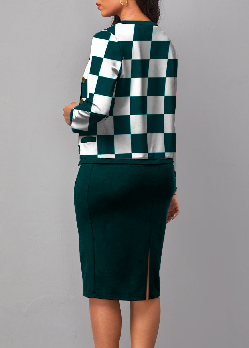 Round Neck Checkered Print Long Sleeve Two Piece Dress