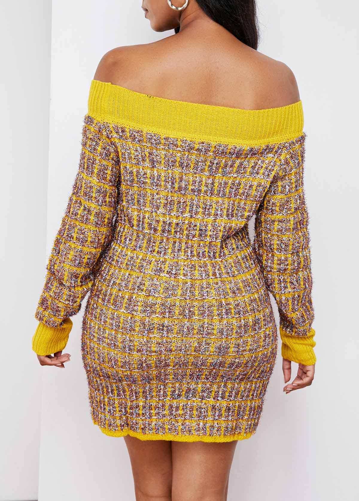 Off Shoulder Long Sleeve Contrast Sweater Dress