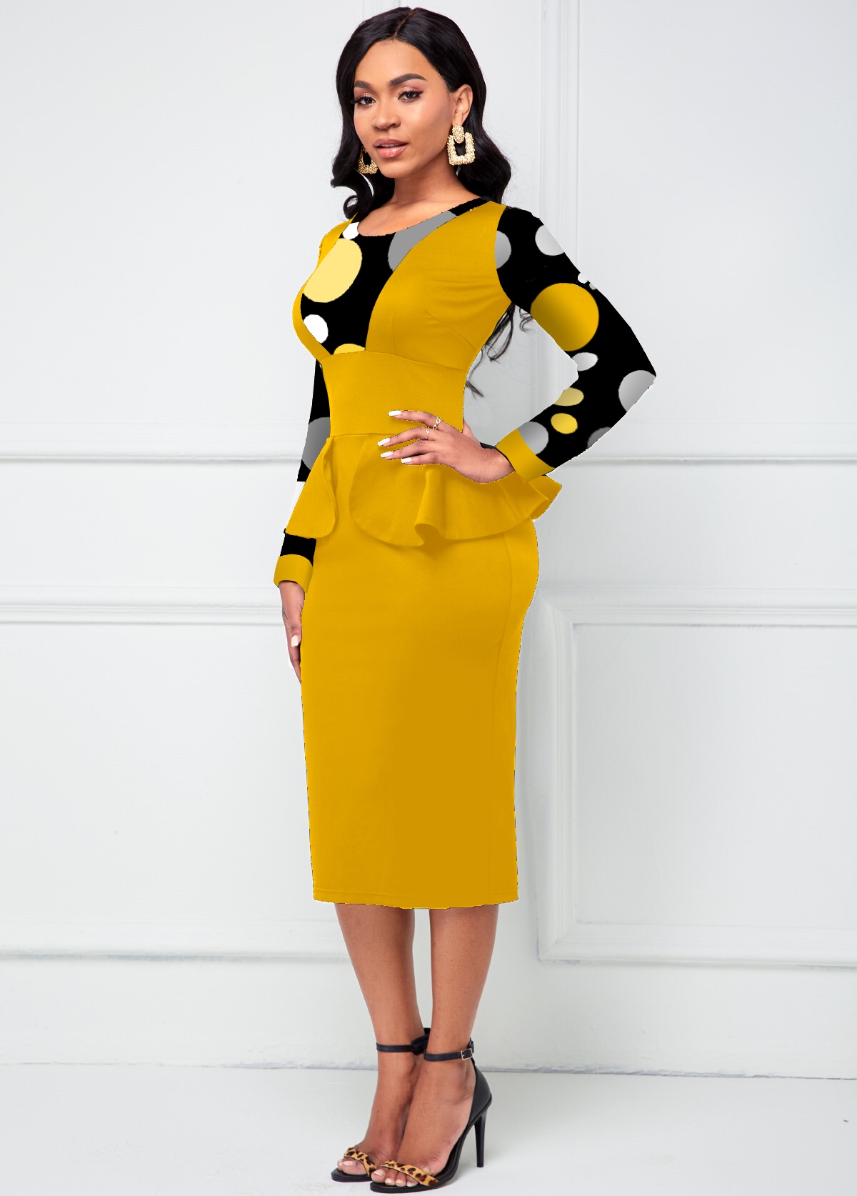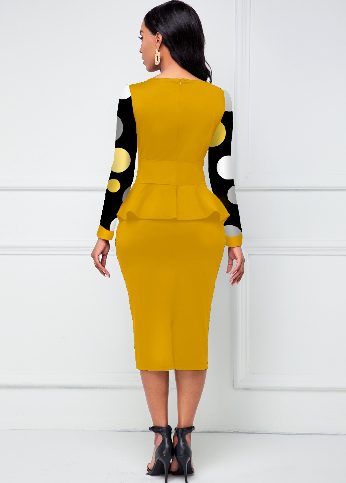 Peplum Waist Round Neck Polka Dot Dress