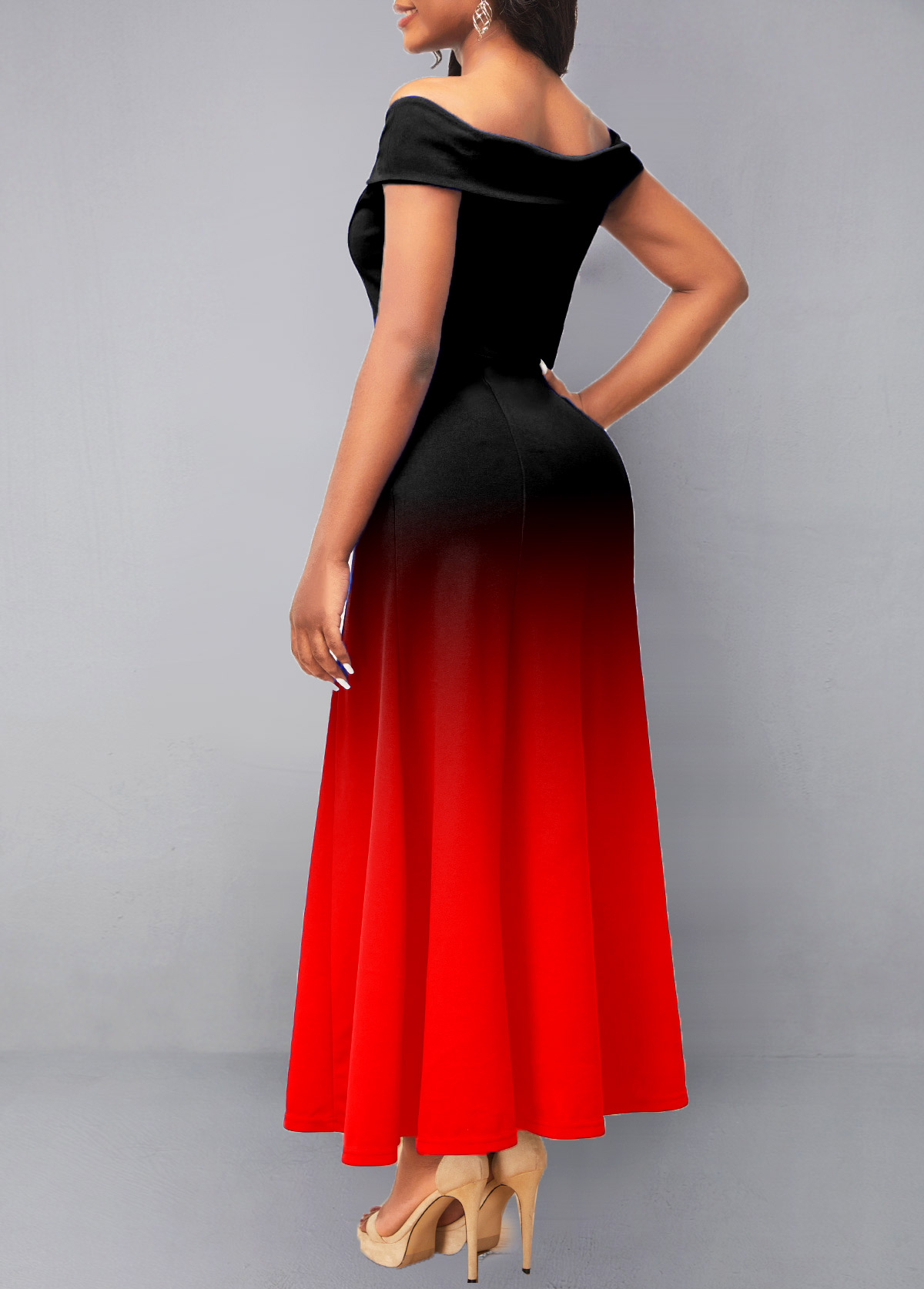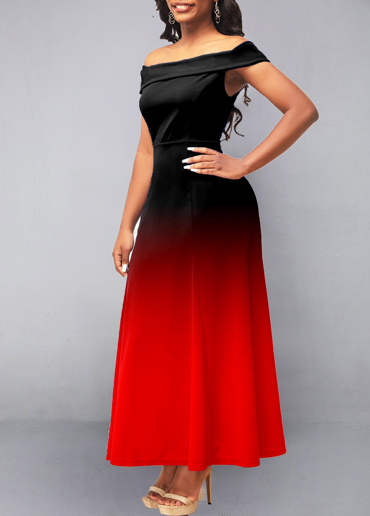 Ombre Off Shoulder Red Maxi Dress