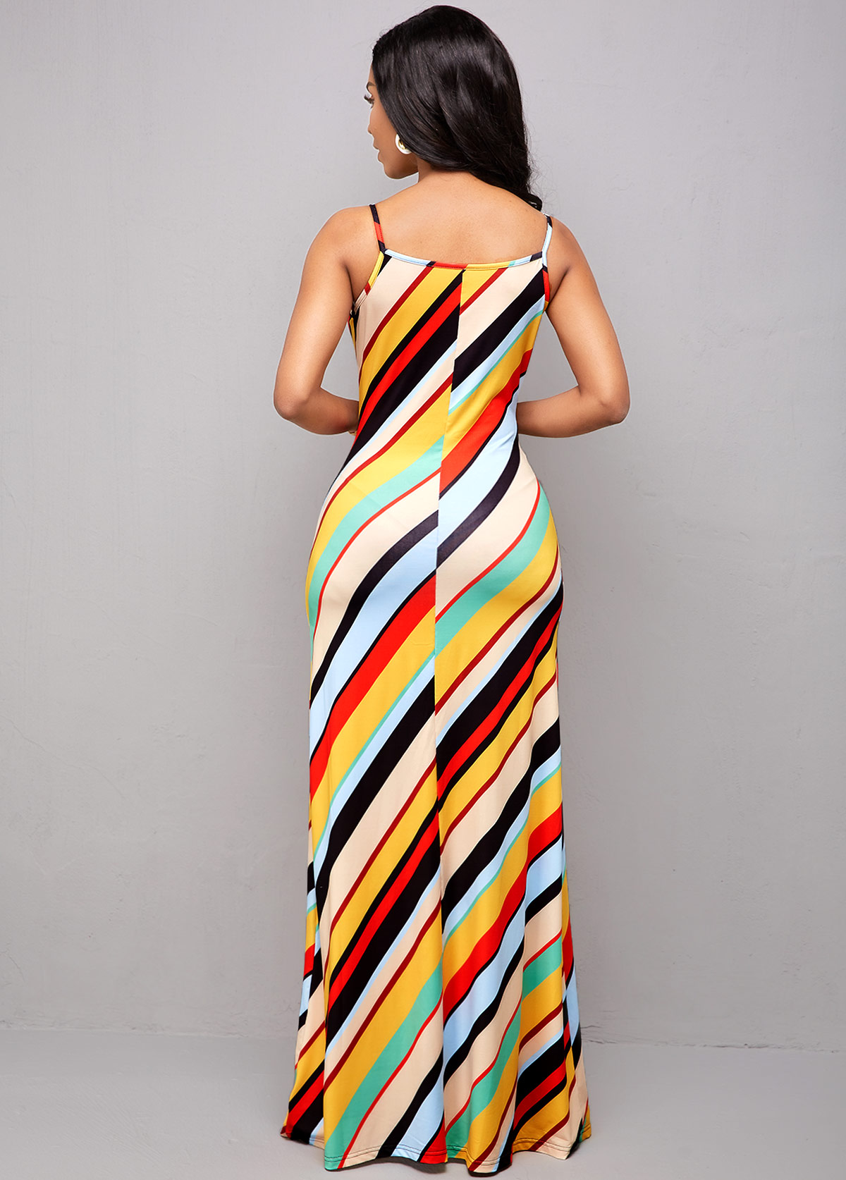 Rainbow Stripe Spaghetti Strap Maxi Dress