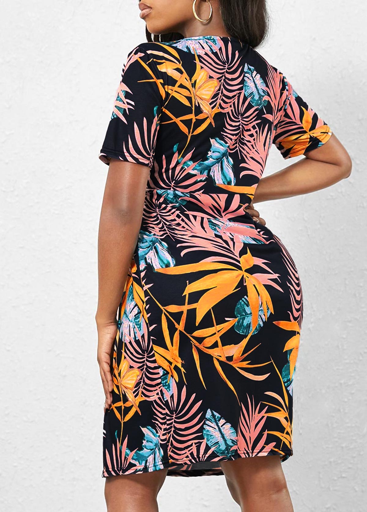 Pink Ombre Floral Print Cutout Front Dress