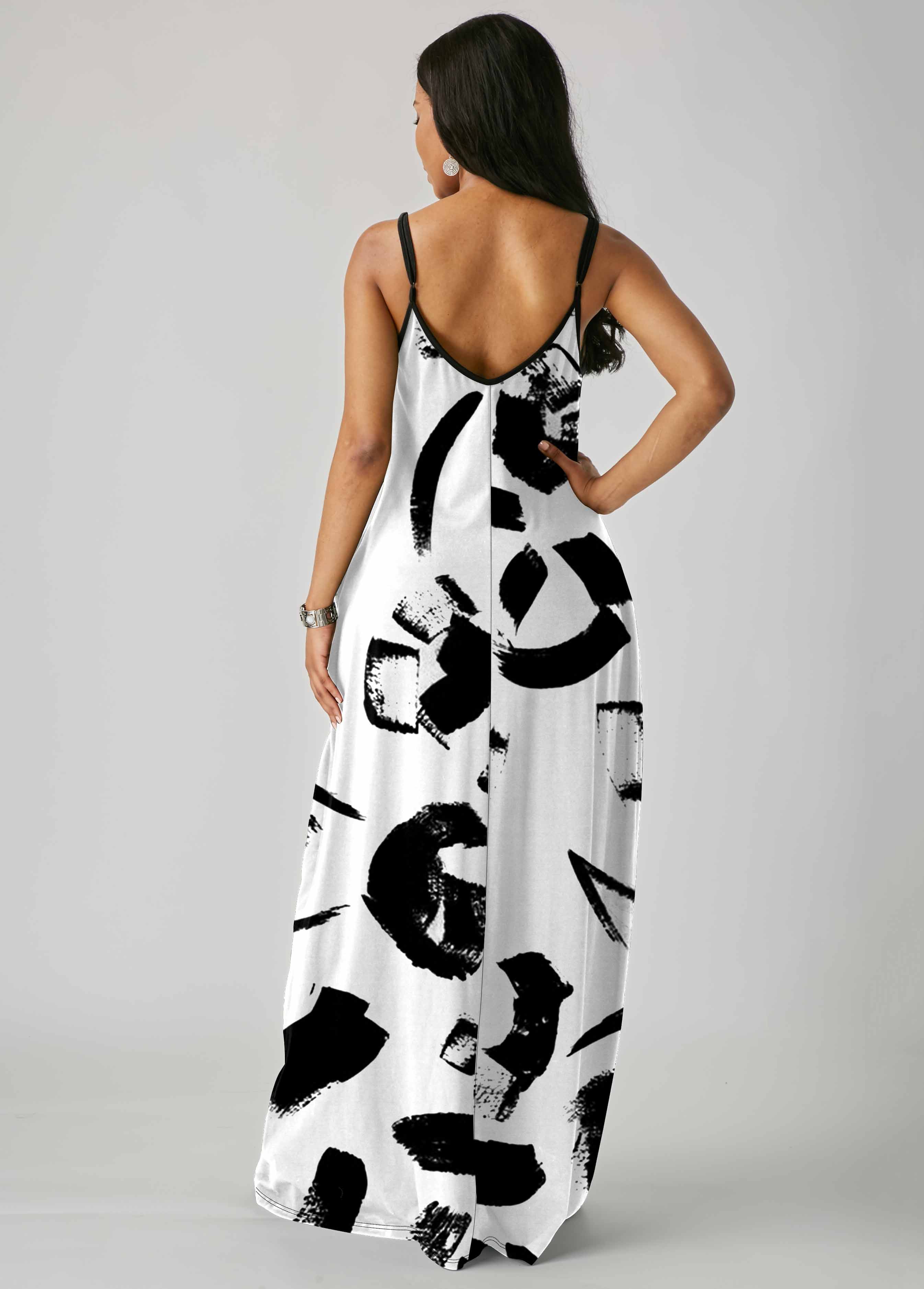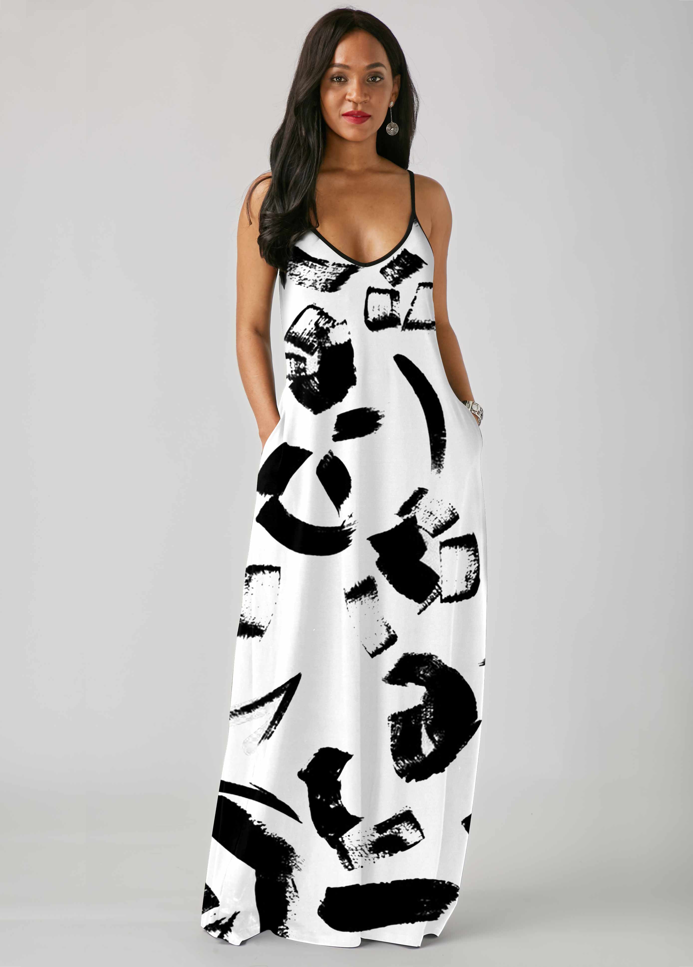 Printed Side Pocket Spaghetti Strap Dress