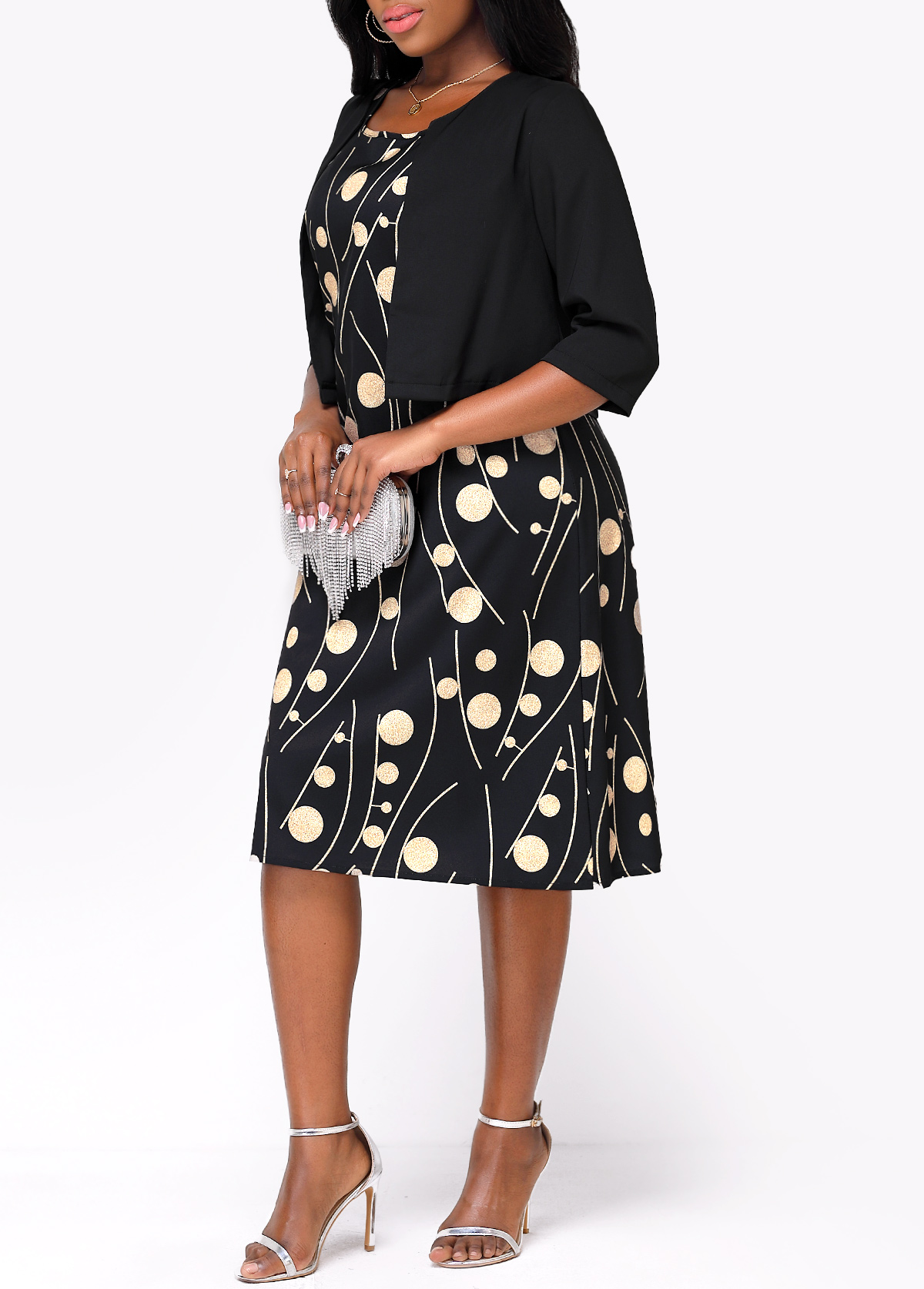 Open Front Black Shawl and Round Neck Dress