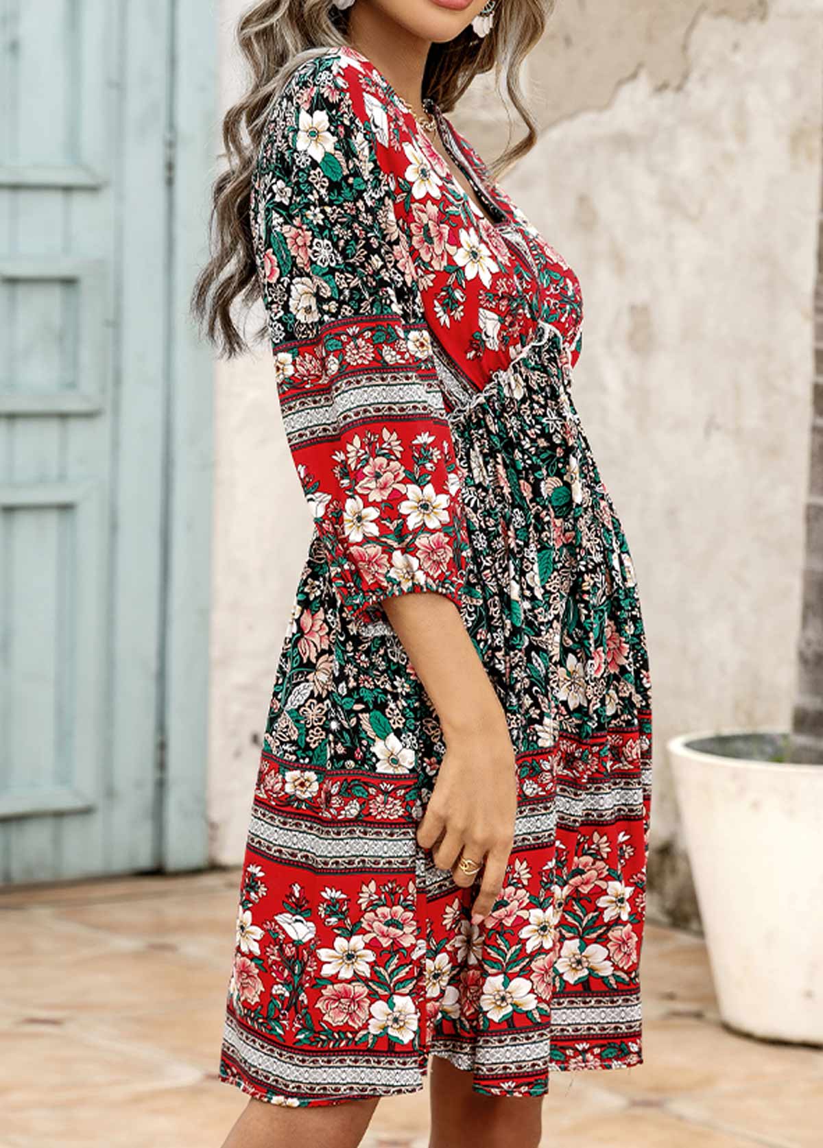 Red Stringy Selvedge Floral Print Dress