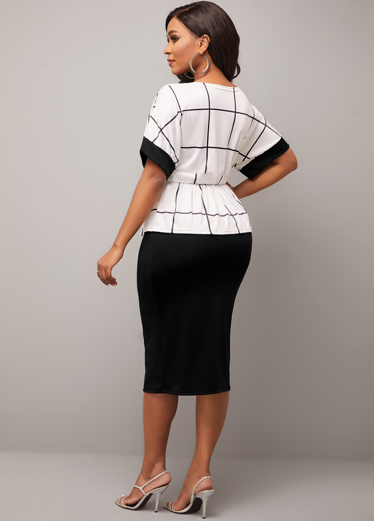 Plaid Round Neck Black Two Piece Dress