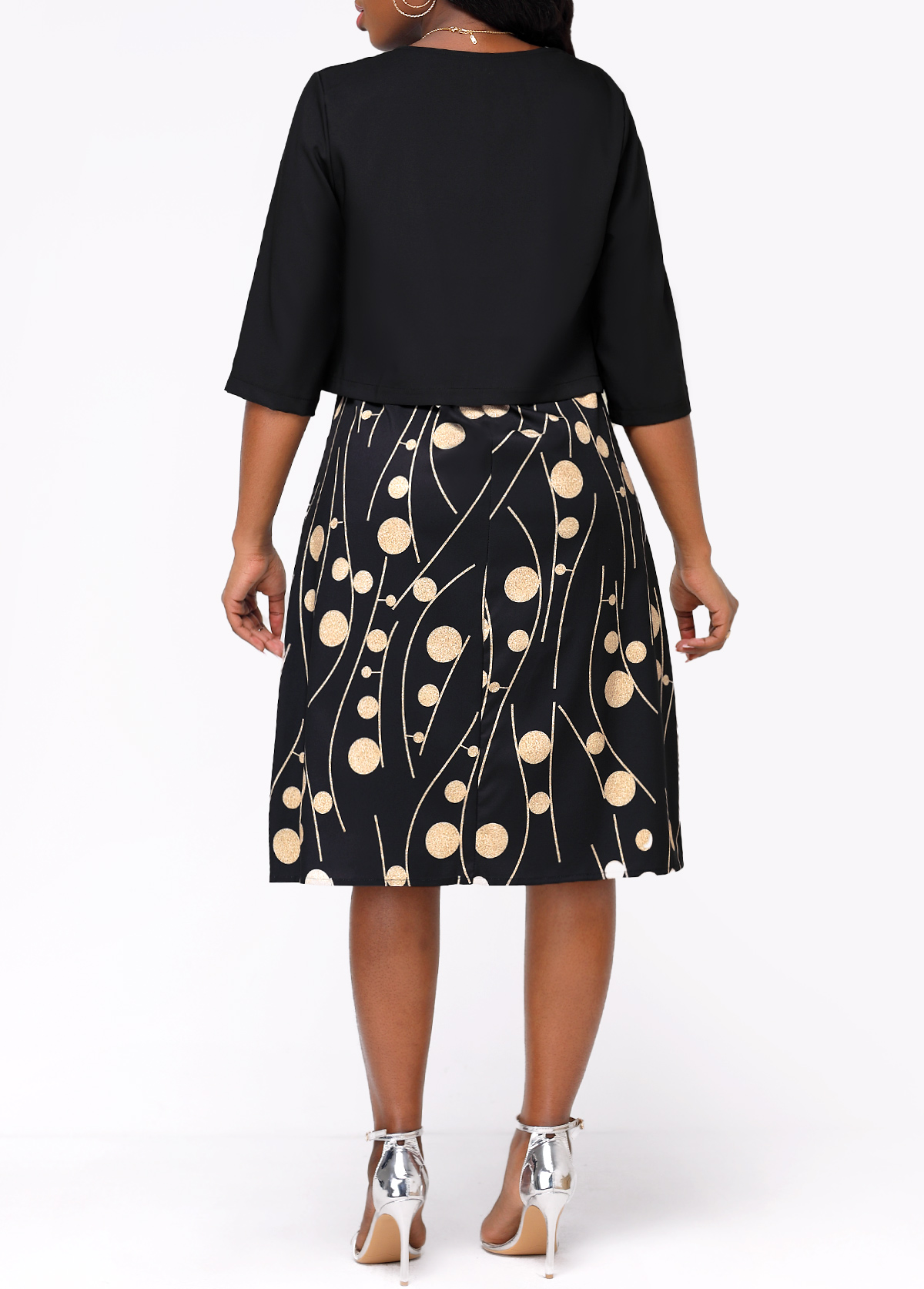 Polka Dot Hot Stamping Black High Low Dress