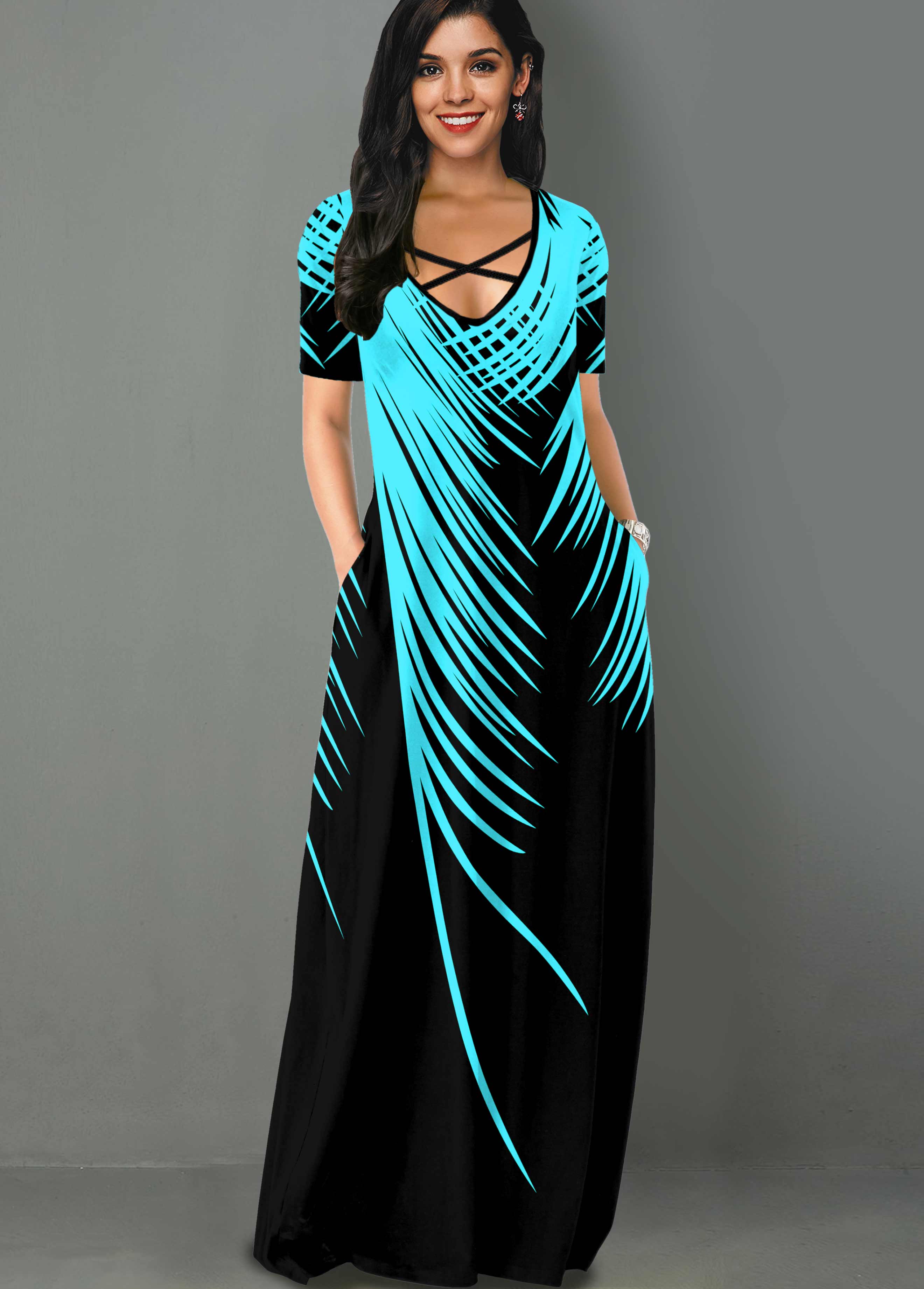 Palm Leaf Print Side Pocket Maxi Dress
