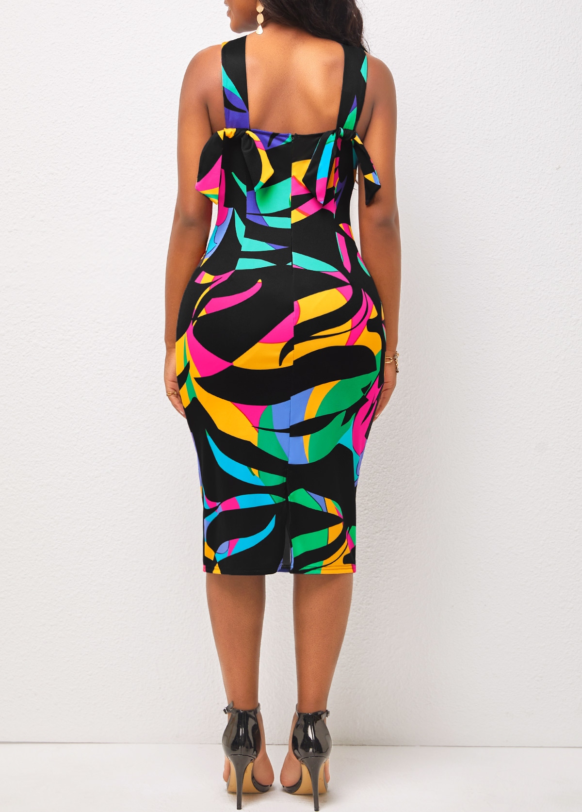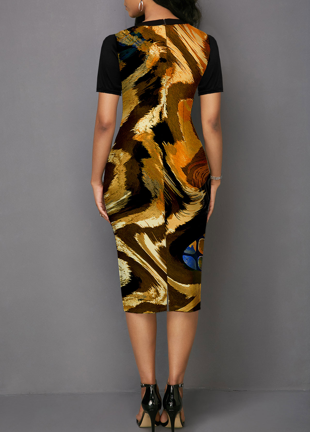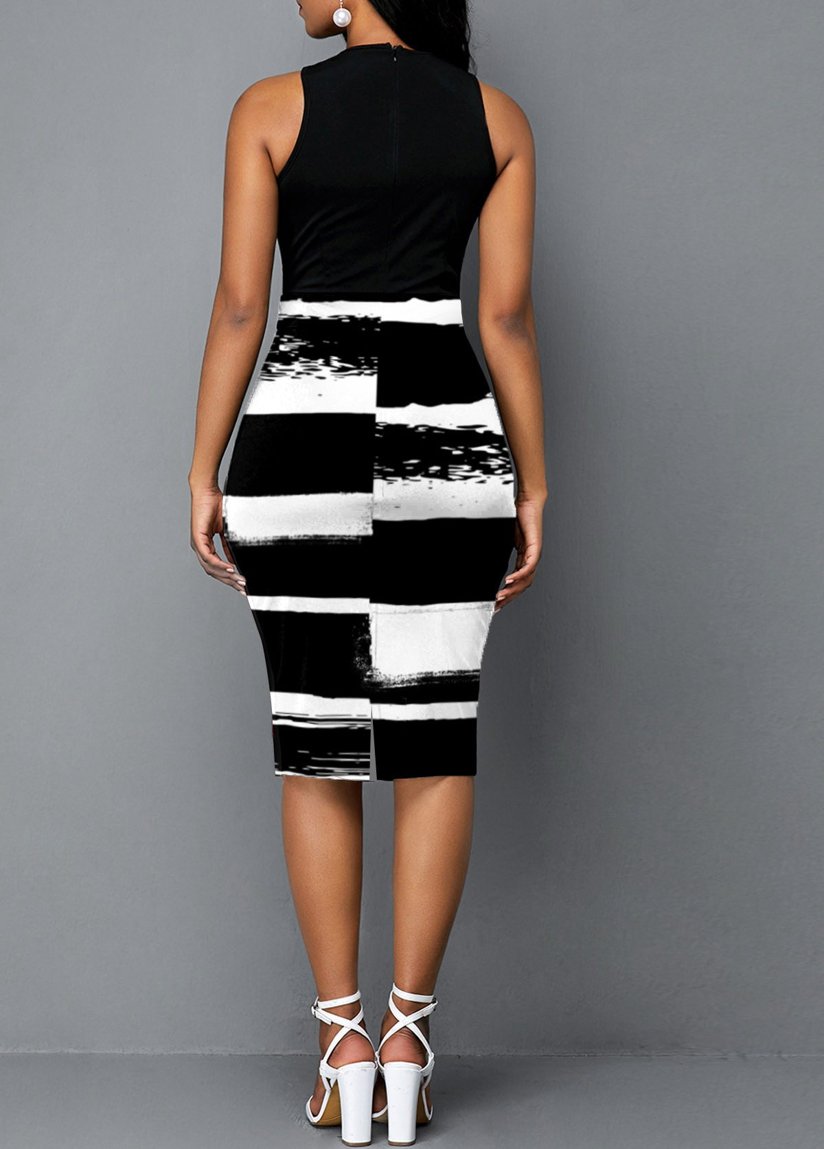 Contrast Printed Sleeveless Round Neck Bodycon Dress