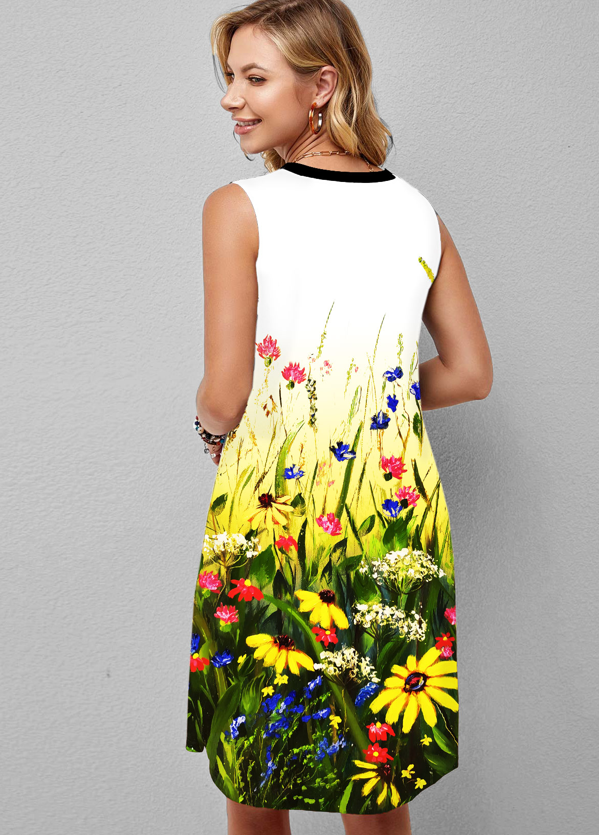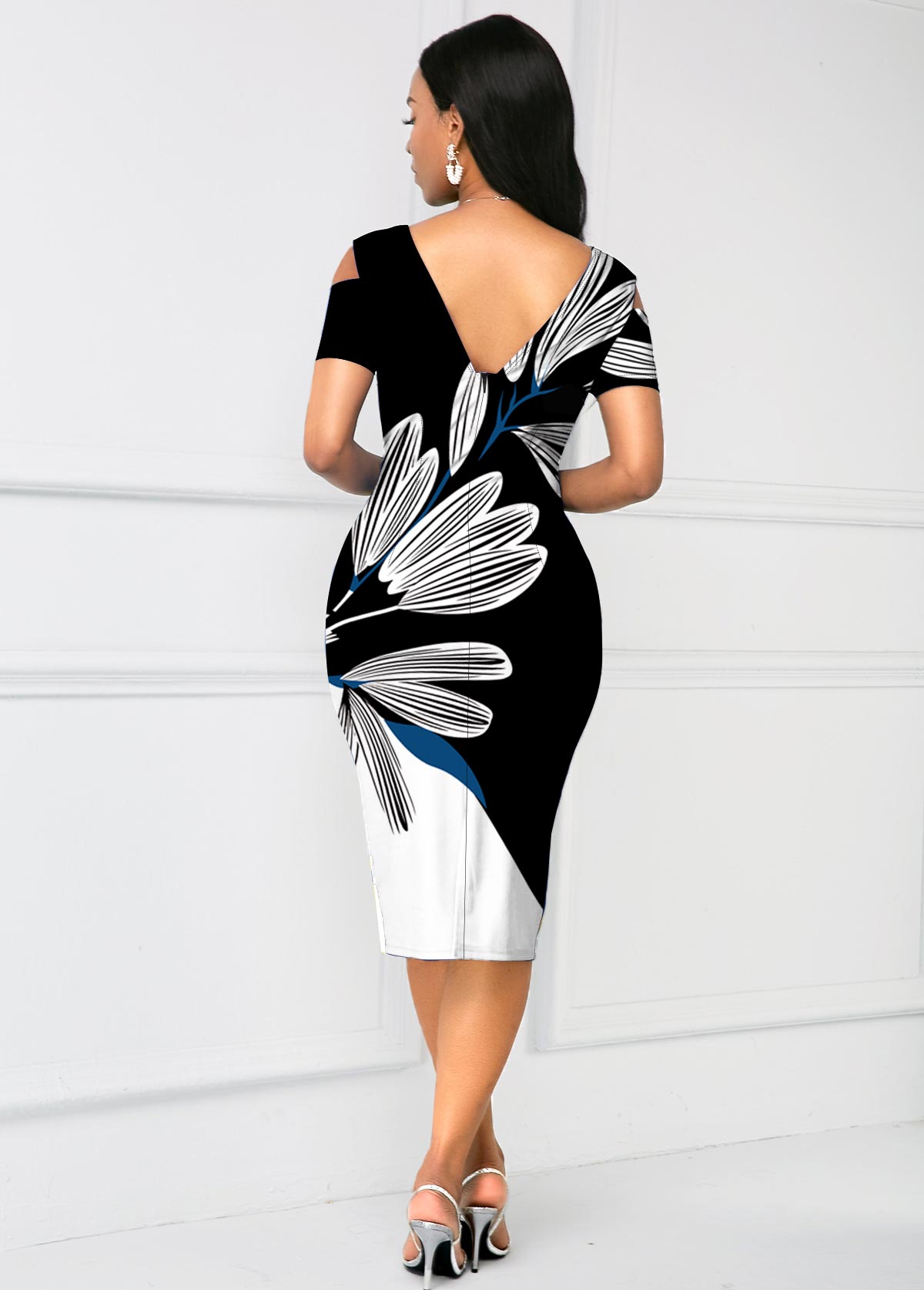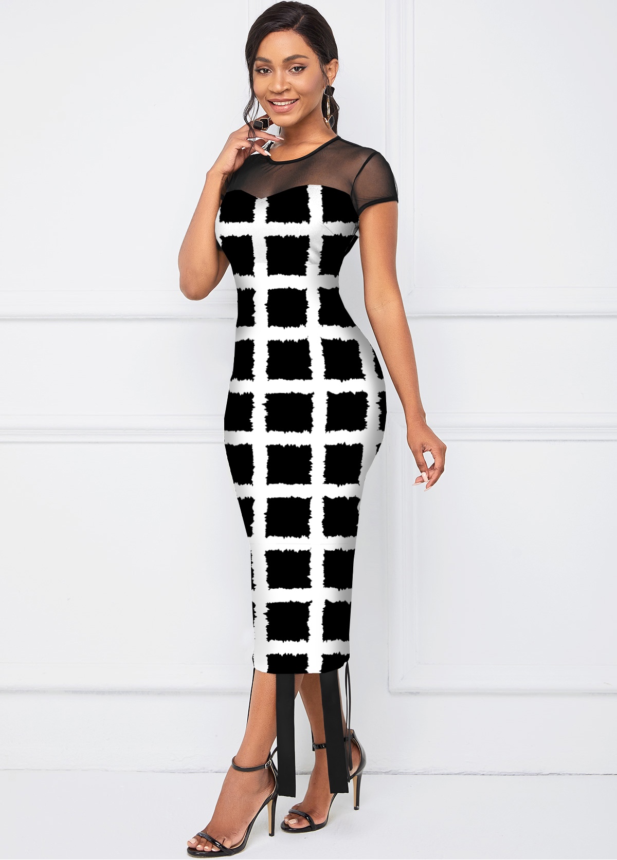 Contrast Printed Sleeveless Round Neck Bodycon Dress