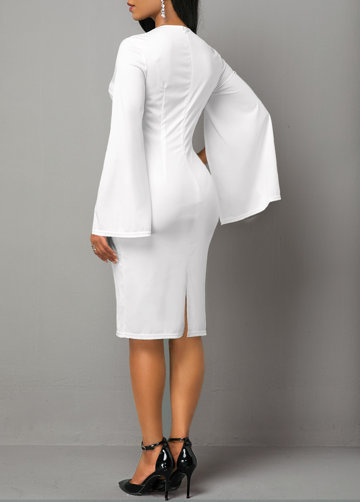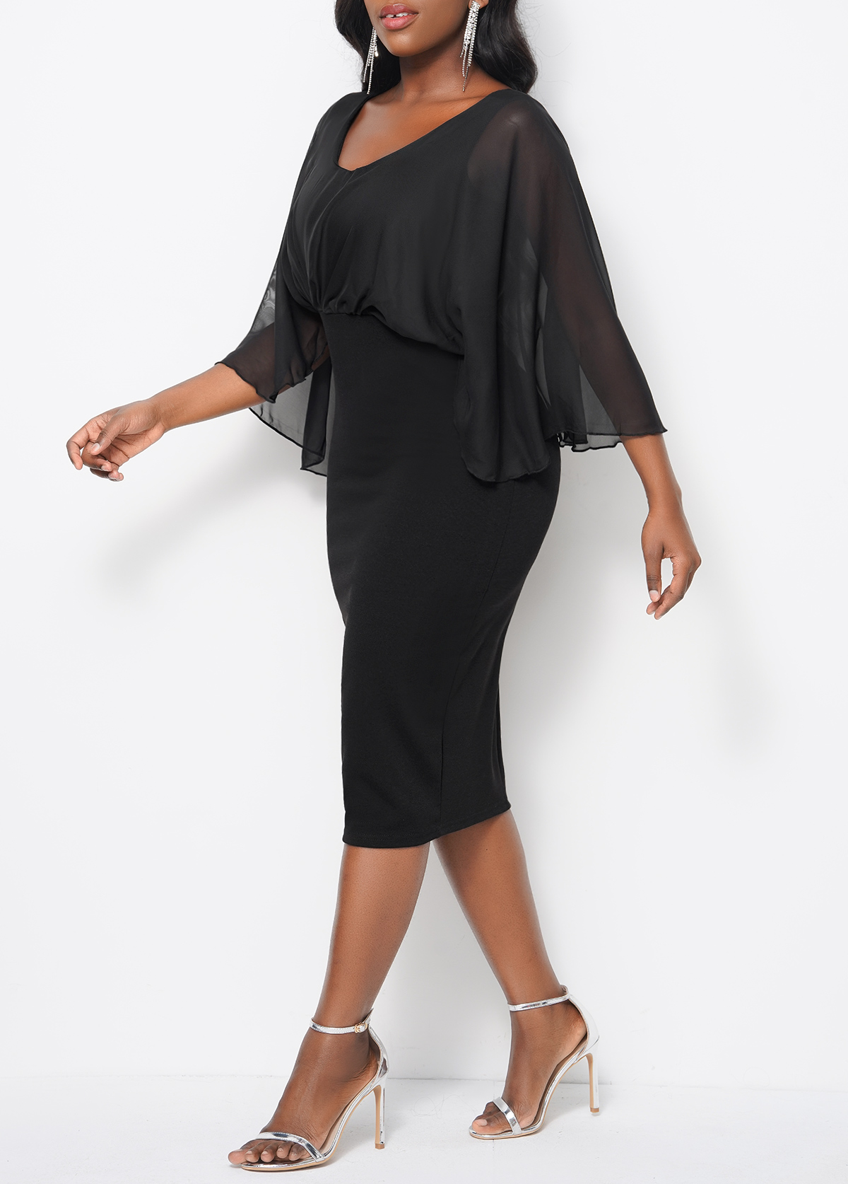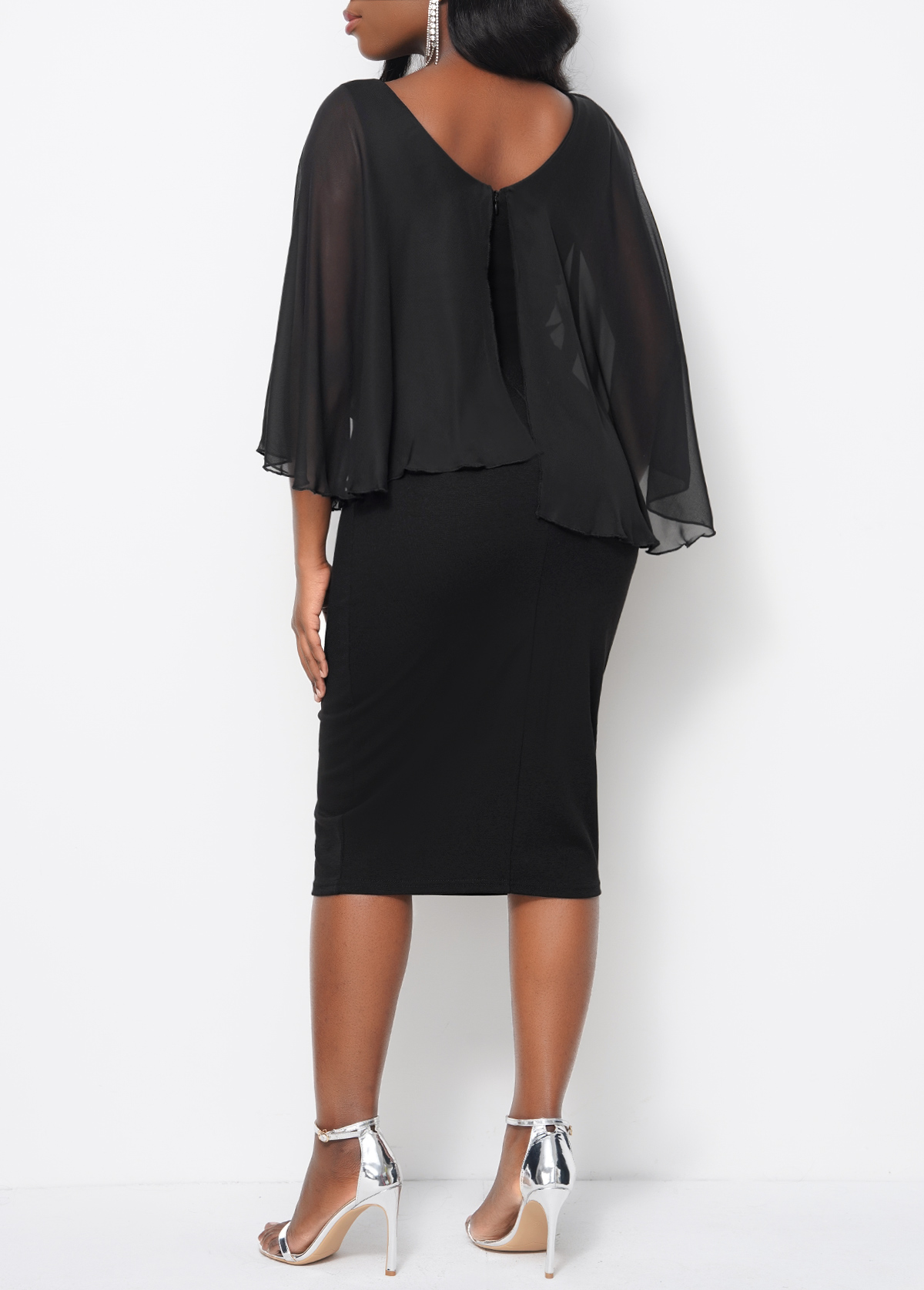 Chiffon Overlay Three Quarter Sleeve Lace Dress