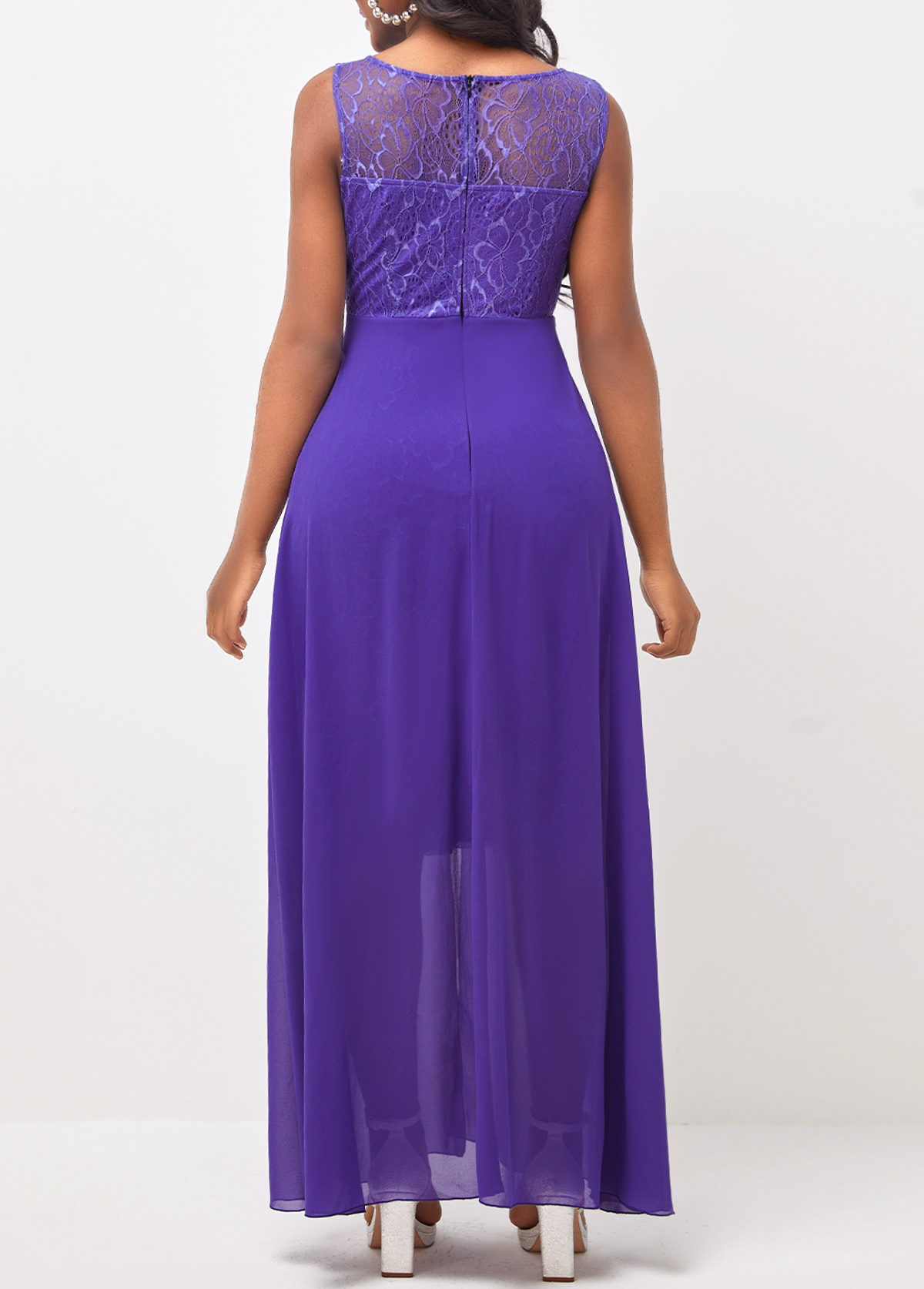Chiffon Cutout Lace Patchwork Lavender Dress