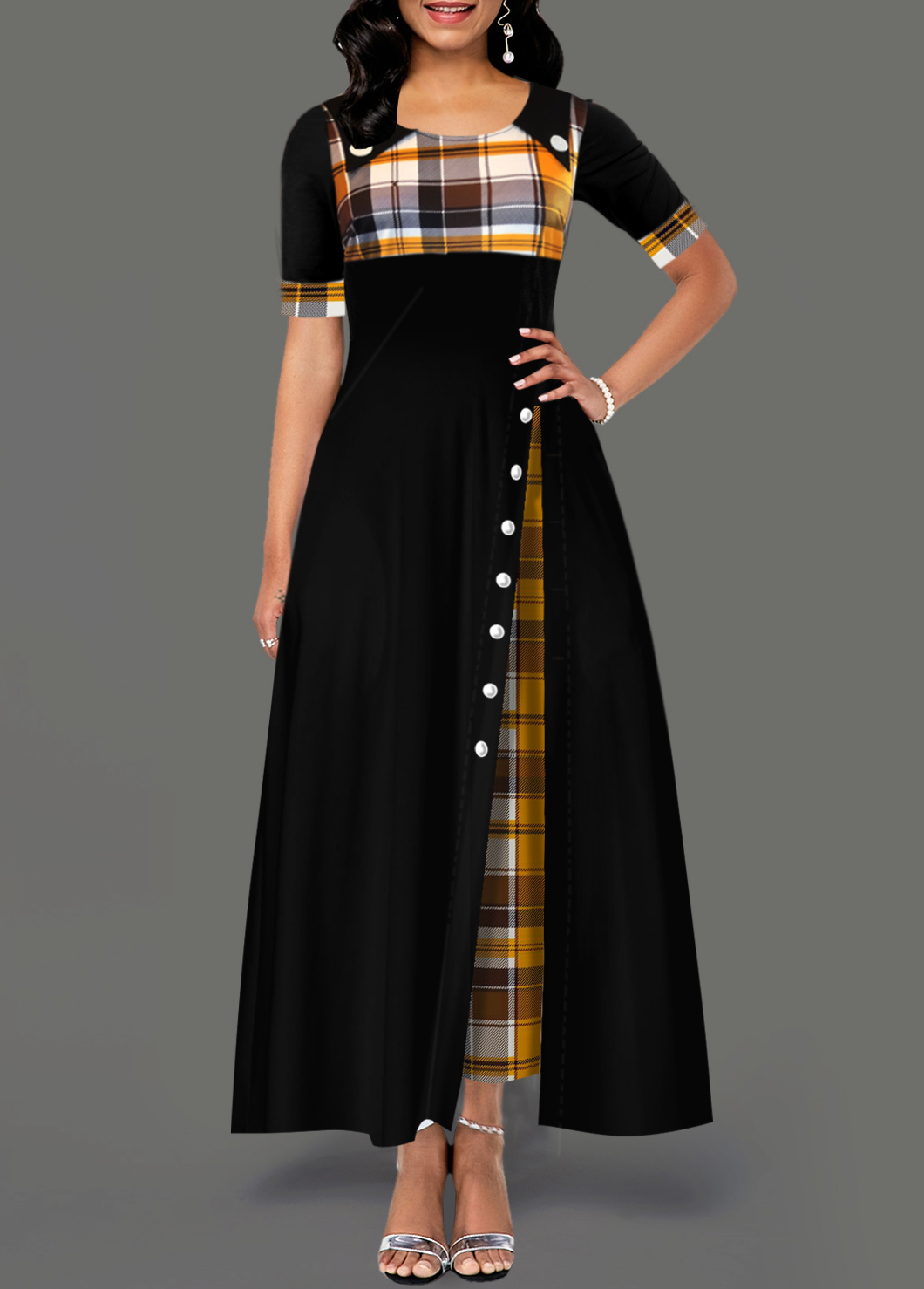 Contrast 3/4 Sleeve Leopard Maxi Dress