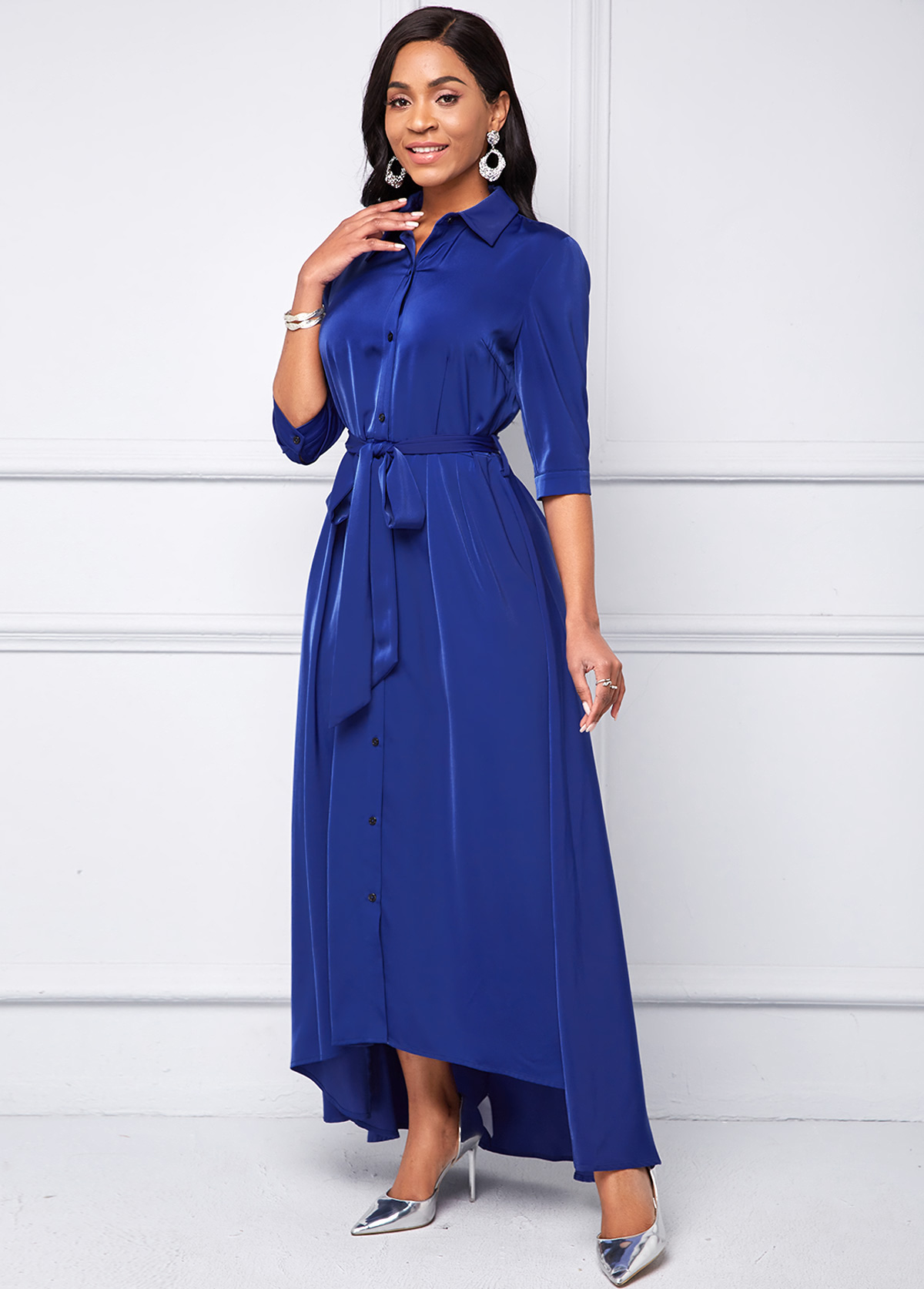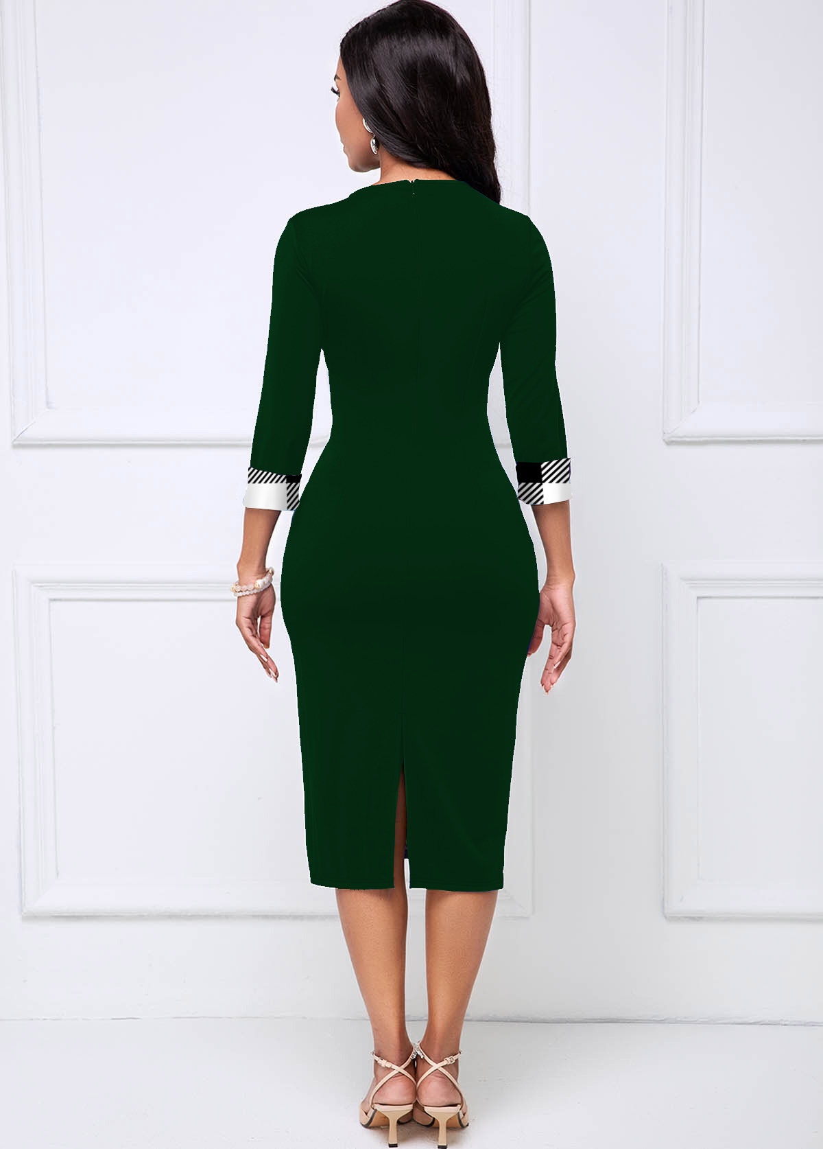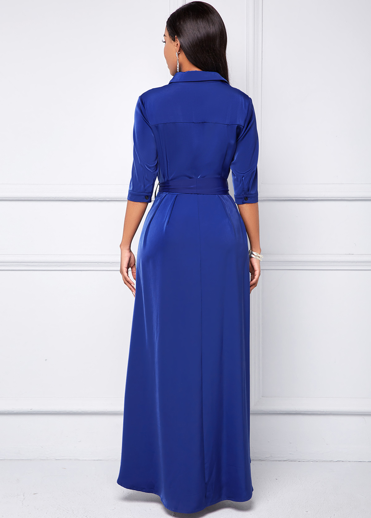 Checkered Print 3/4 Sleeve Royal Blue Dress
