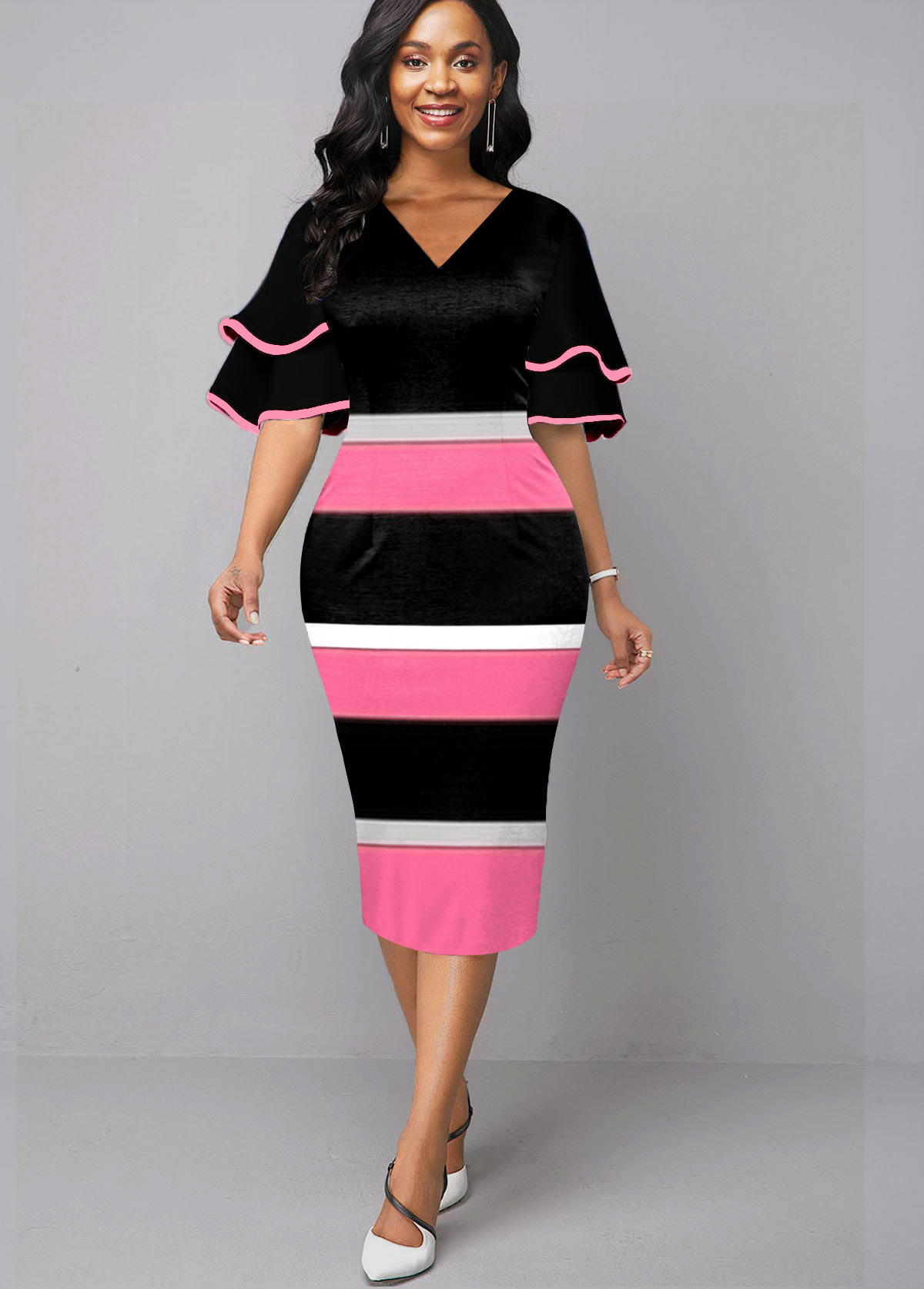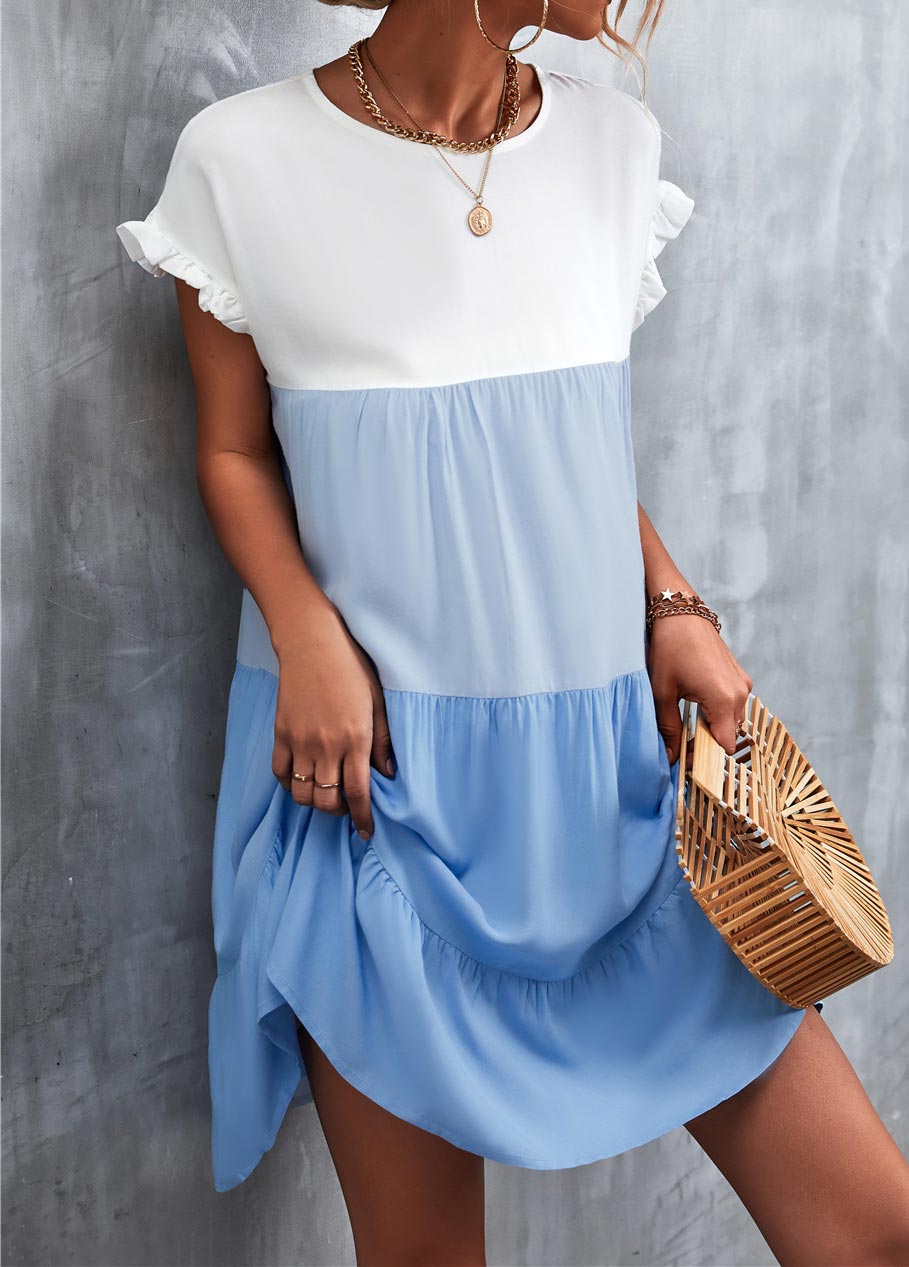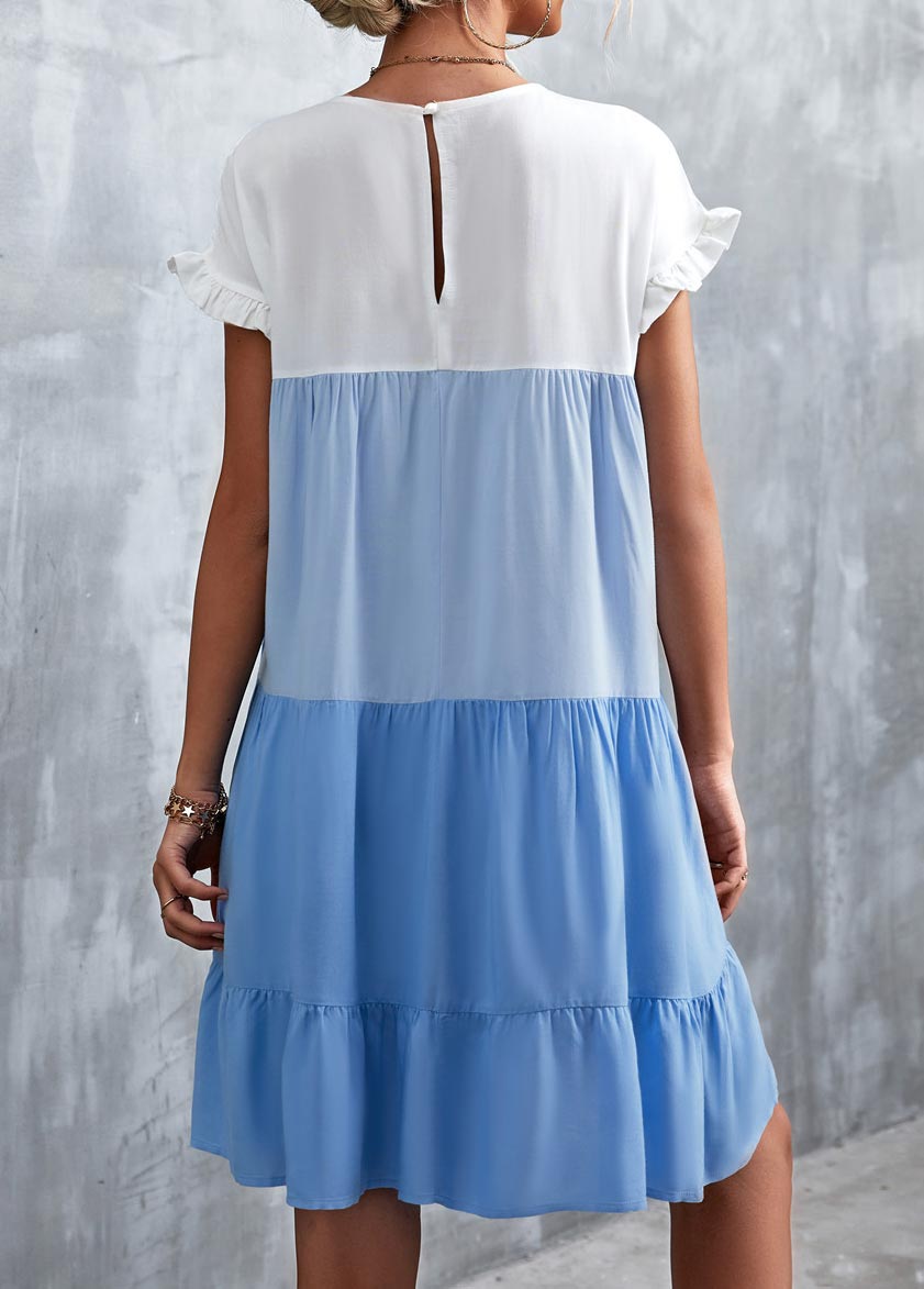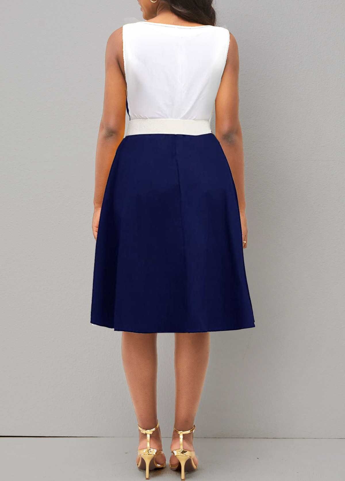 Color Block Bowknot Faux Two Piece High Waist Dress