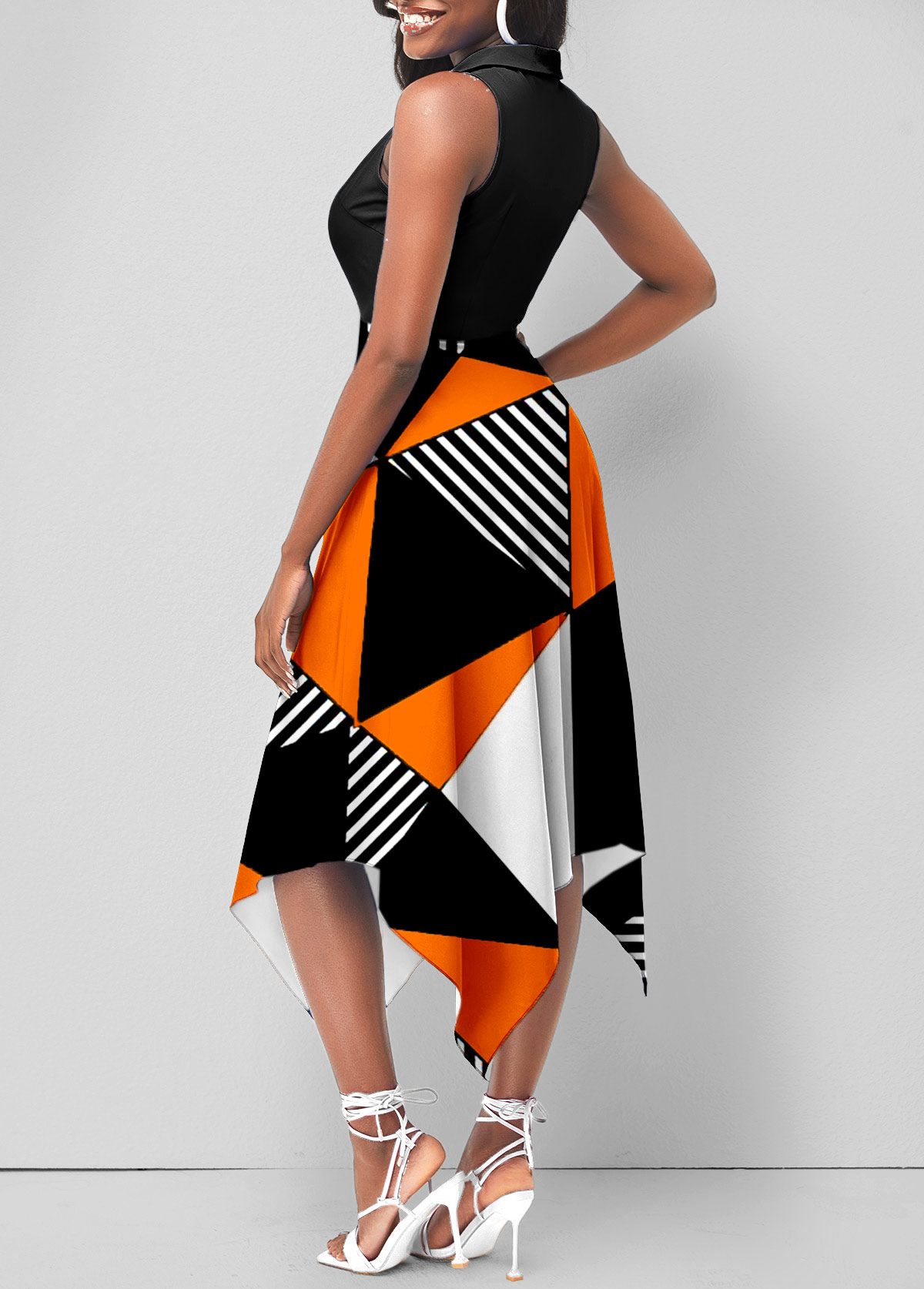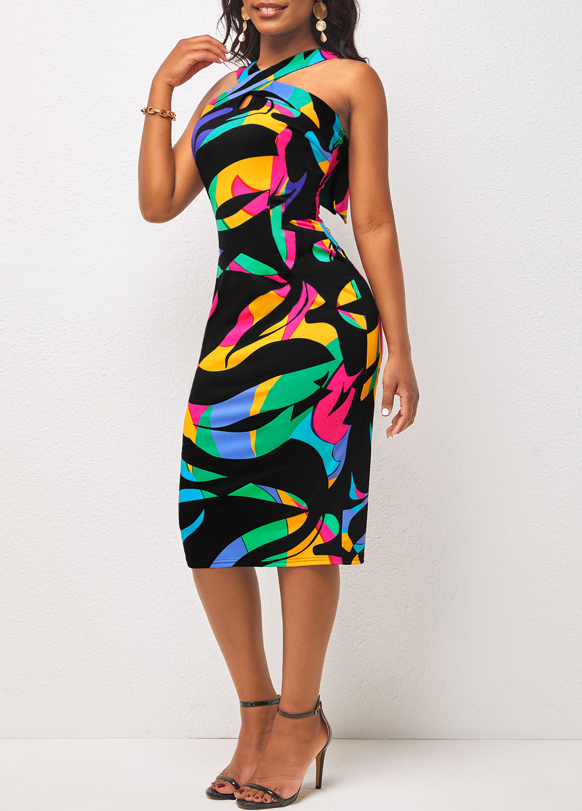 Cross Halter Geometric Print Sleeveless Multi Color Dress