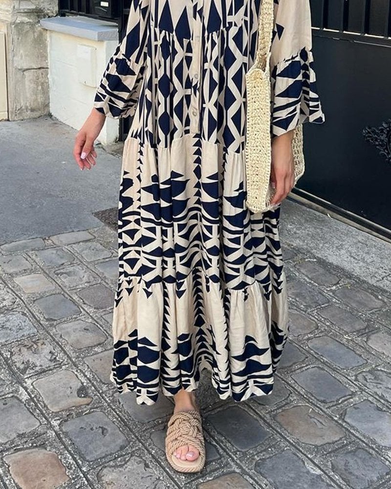 Fashion Casual V-Neck Long Sleeve Print Dress