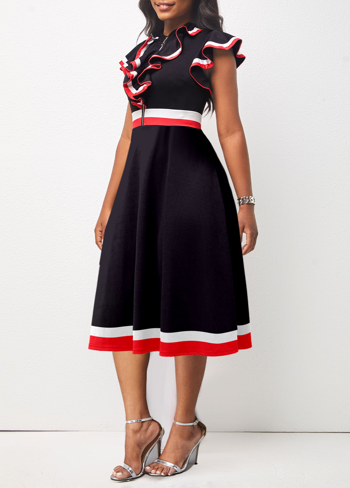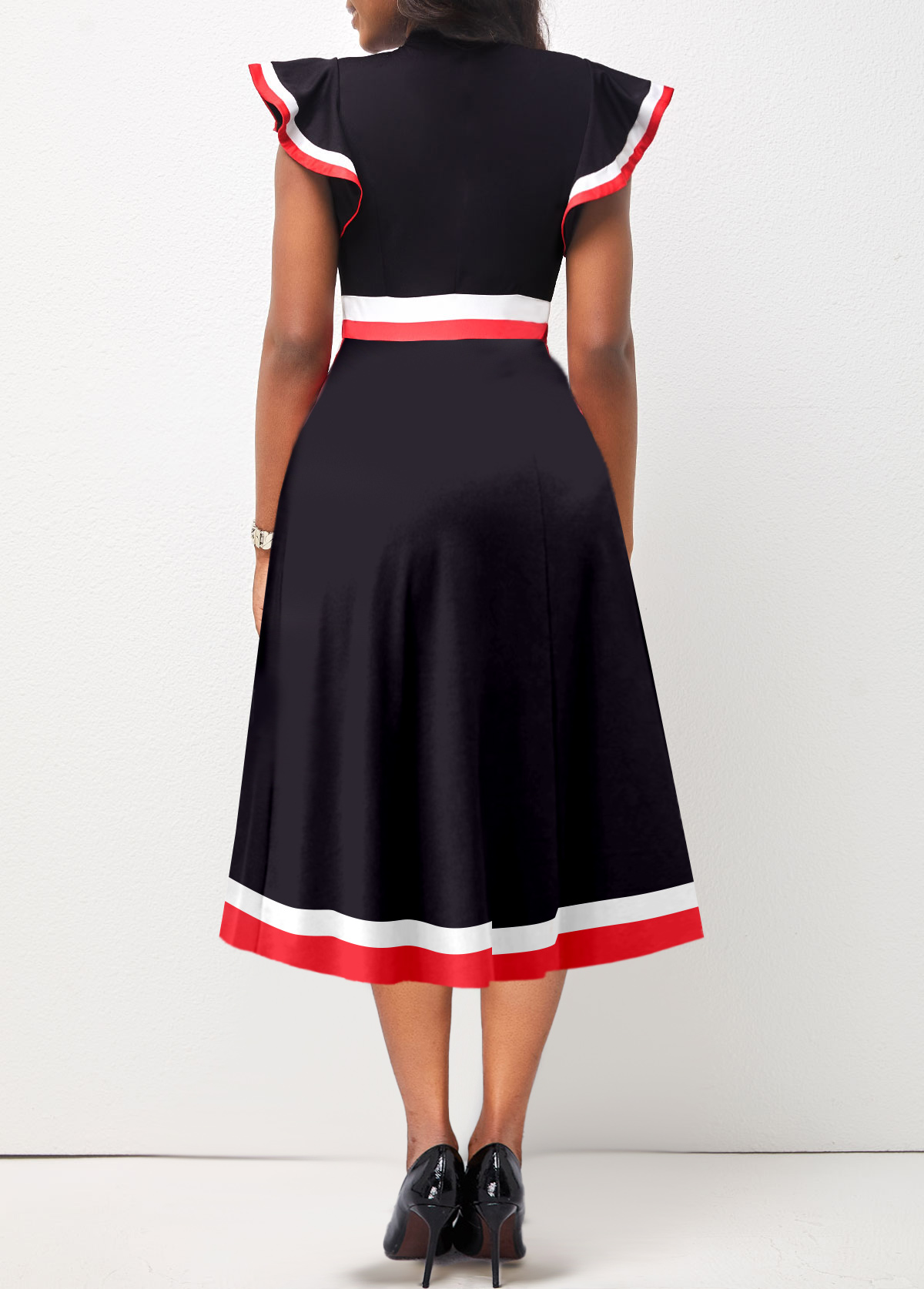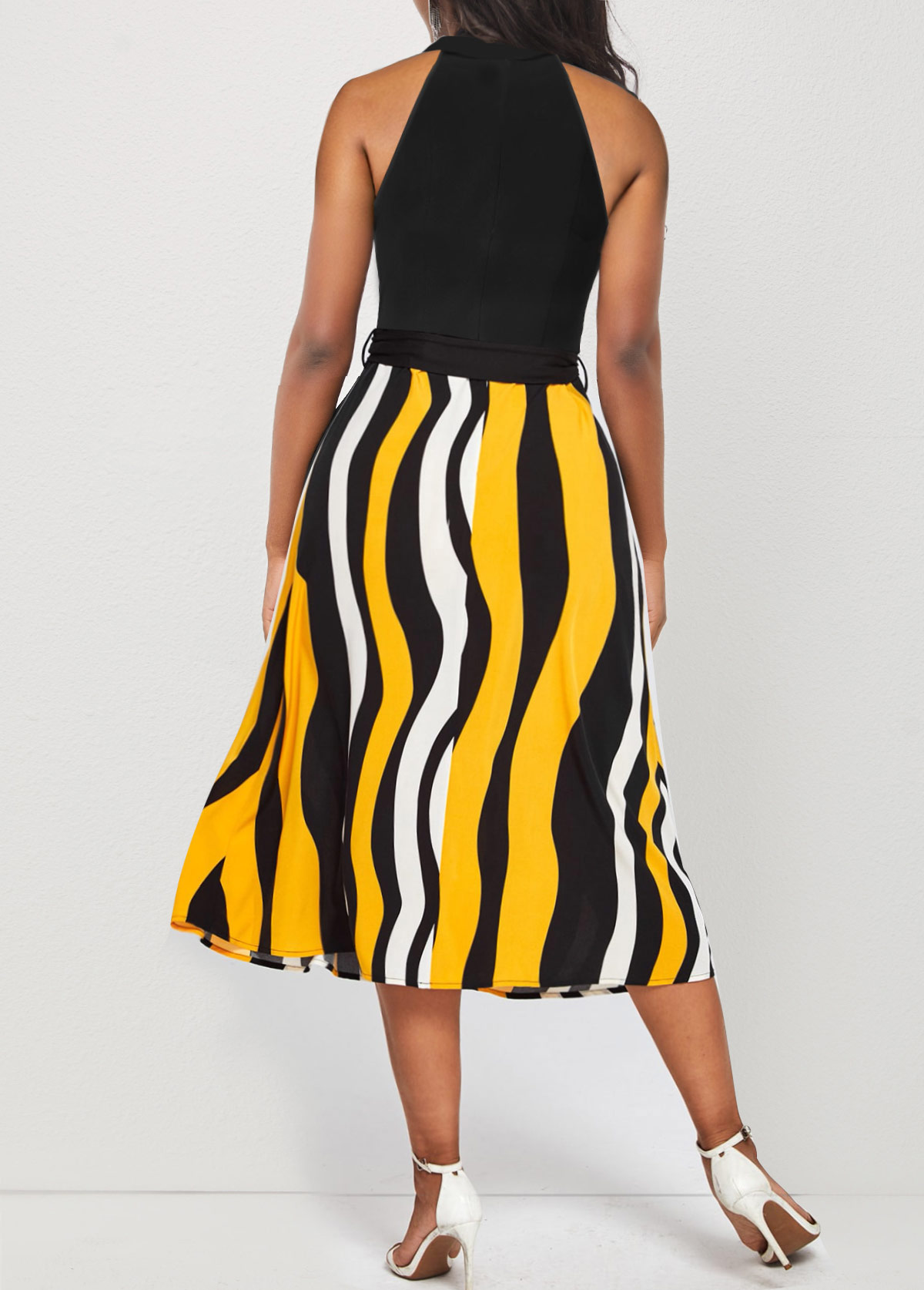 Bib Neck Color Block Striped Belted Dress