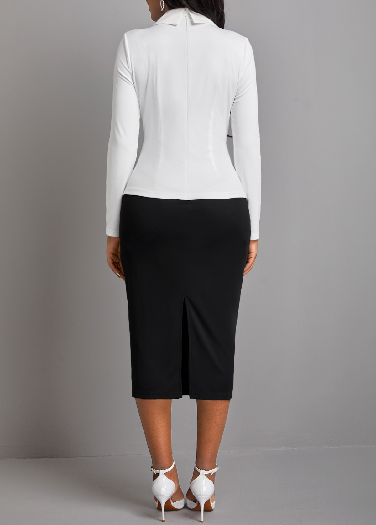Bow Collar White Long Sleeve Dress
