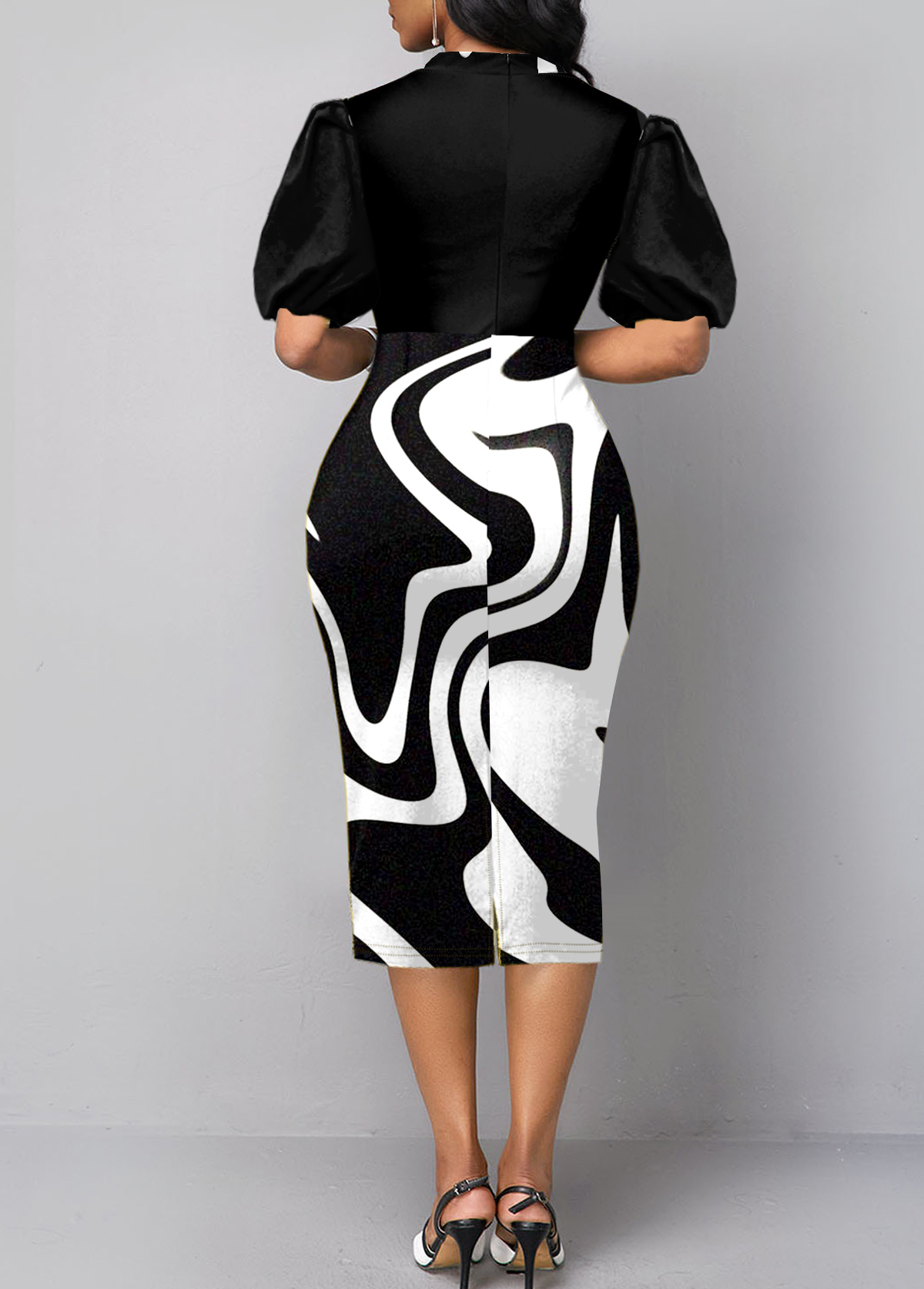 Black Geometric Print Cage Neck Dress
