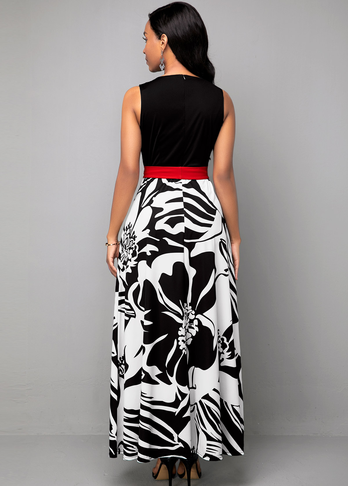 Black Chevron Print Sleeveless Maxi Dress