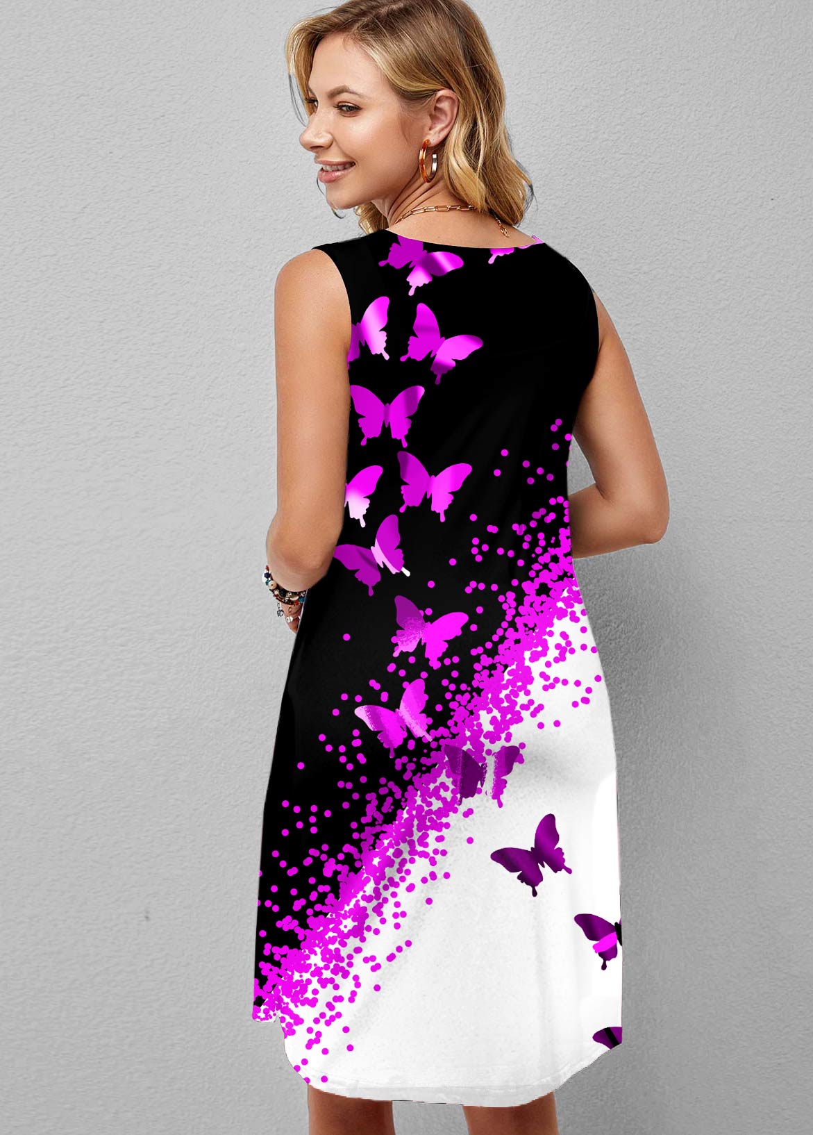 Butterfly Print Double Side Pockets Dress